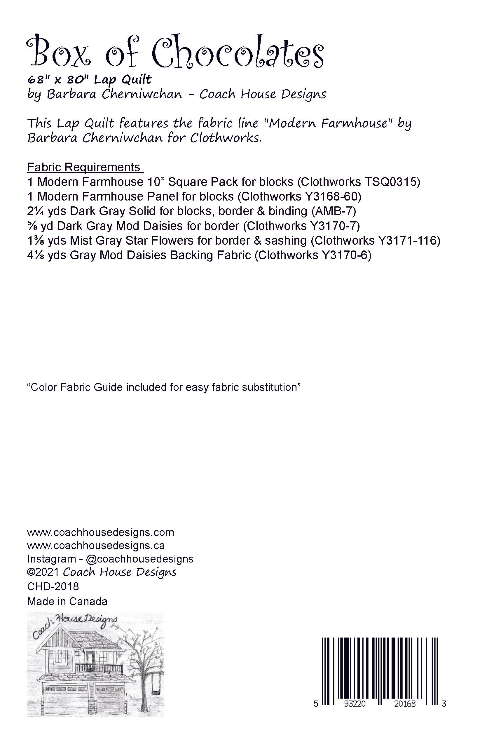 Sometimes simple is best. This 68" x 80" lap quilt uses a 10" square pack and panel from Barb Cherniwchan's (Me!) Modern Farmhouse fabric line for Clothworks. The framed mandalas are from the panel so there is no applique here! Whip it up lickety-split as a gift or for yourself. Modern Farmhouse will be arriving at your local quilt shop in March 2021.