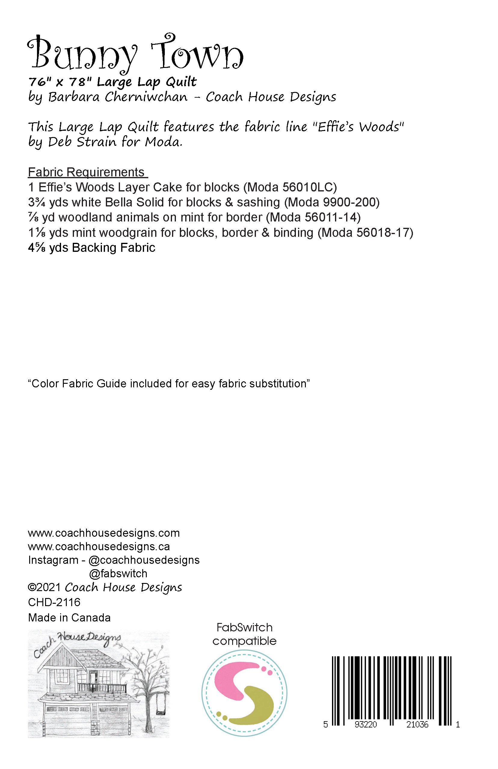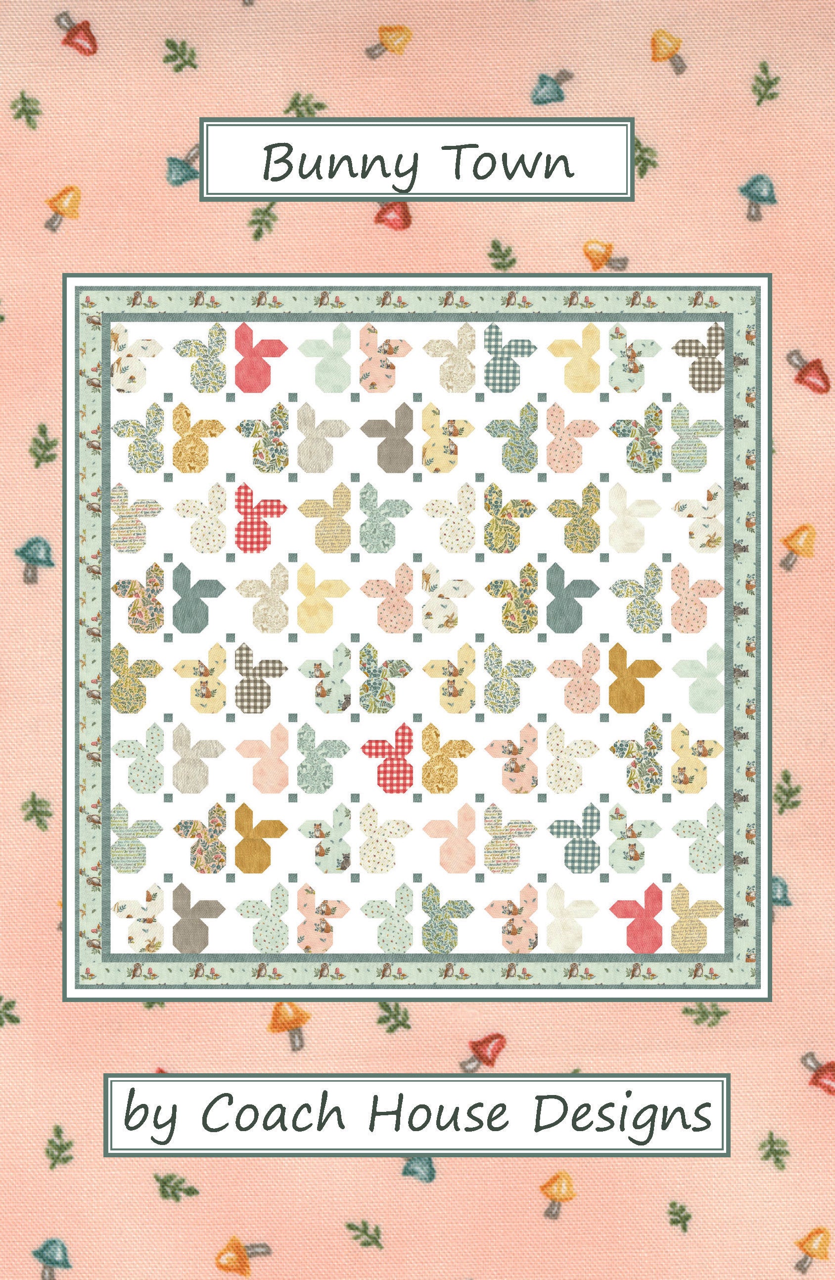 This adorable 76" x 78" lap quilt with pieced bunny heads features Deb Strain's fabric line "Effie's Woods" for Moda, and uses a layer cake. As soon as I saw the Effie's Woods collection, I knew that a bunny pattern was a must.