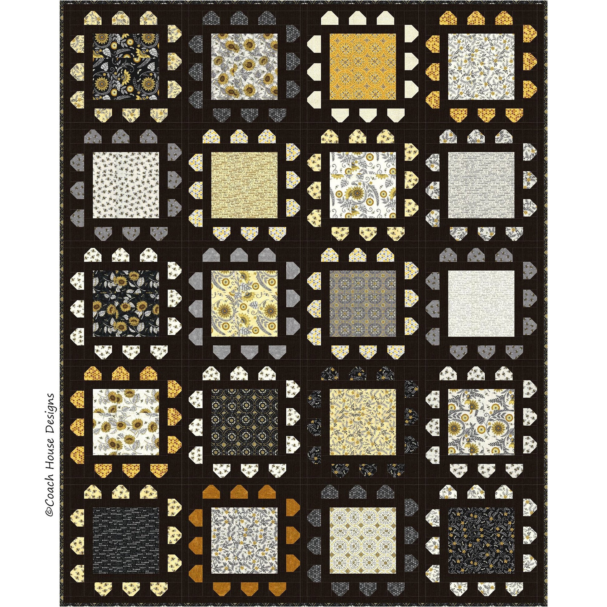 This lap quilt (69" x 86") pattern uses a layer cake and features "Bee Grateful" by Deb Strain which will be in stores November 2020.