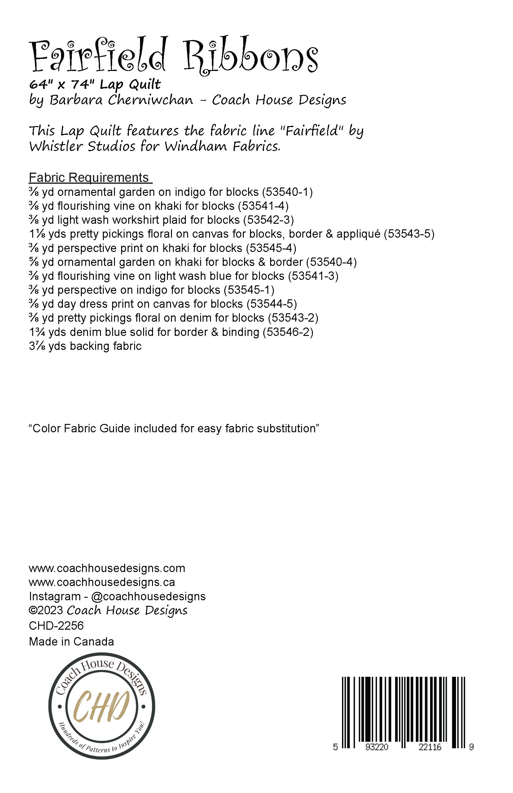This pattern is FabSwitch compatible. FabSwitch is my free app which allows you to switch out the fabrics in the original design with current fabrics preloaded in the app or with fabrics that you load yourself. You can then print out a revised picture with an updated fabric requirements list. Check out my demo video on the home page. The app is found online at app.fabswitch.com.