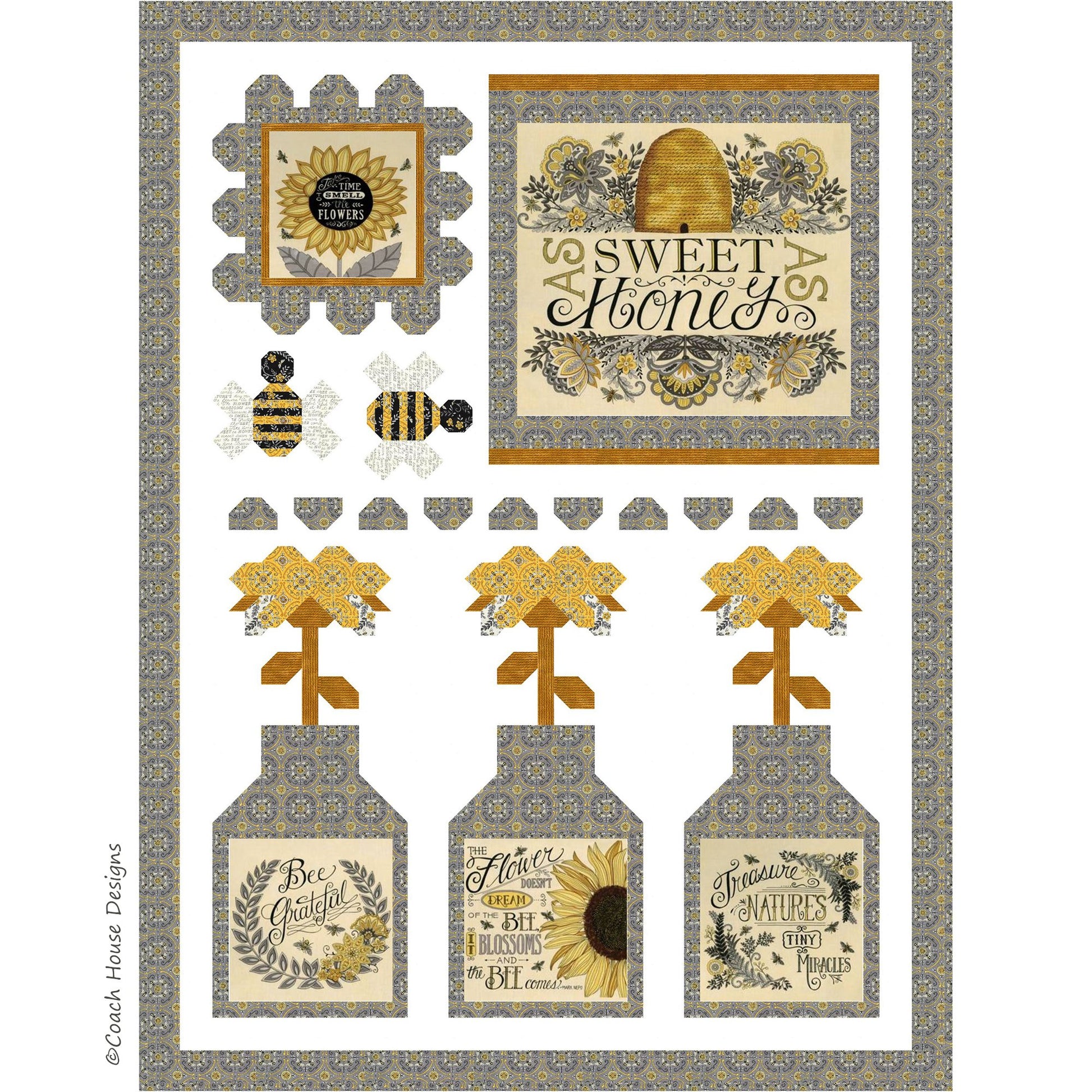 This sweet lap quilt pattern features the parchment panel from Deb Strain’s "Bee Grateful" fabric line. No applique here! Pattern is available now and the fabric will be in stores beginning November 2020. This pattern is also available as a digital pattern at a discounted rate.