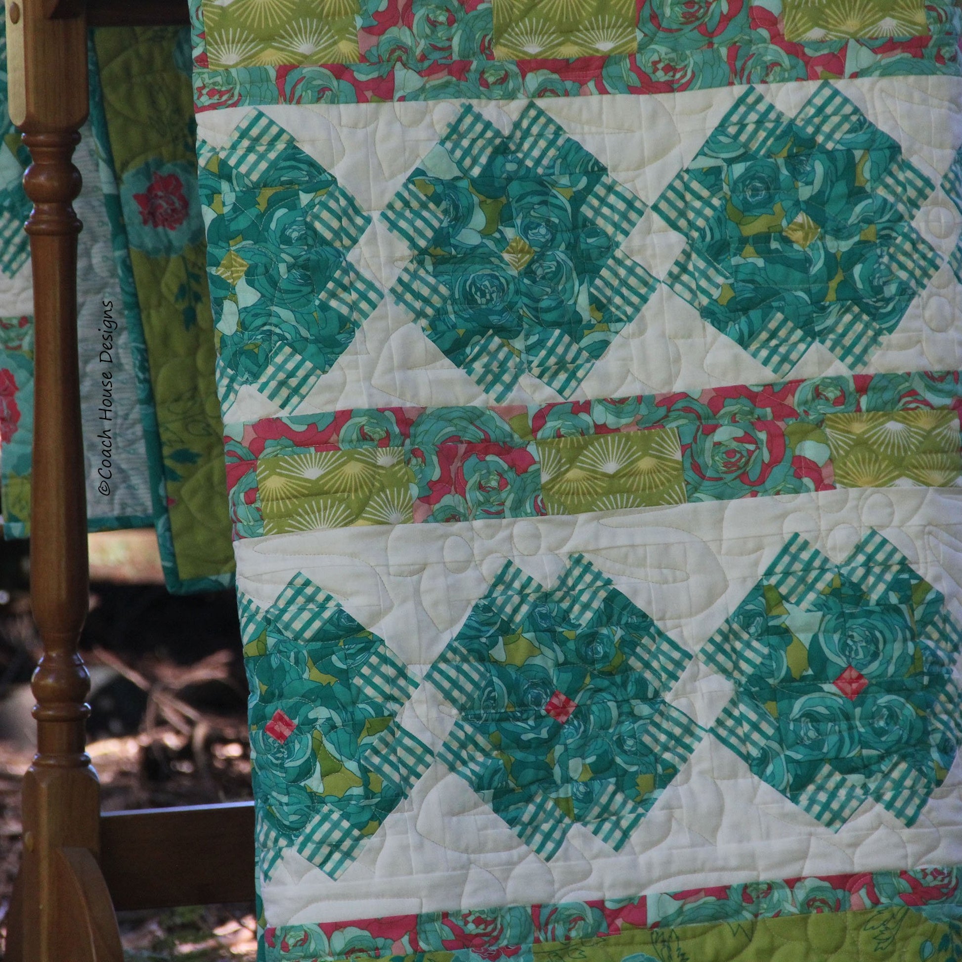 Colorful double/full quilt (76" x 84") for both spring and summer featuring "Acreage" by Shannon Orr. It would look pretty in softer tones and neutrals too! Pattern is also available as a digital PDF download at a discounted rate.