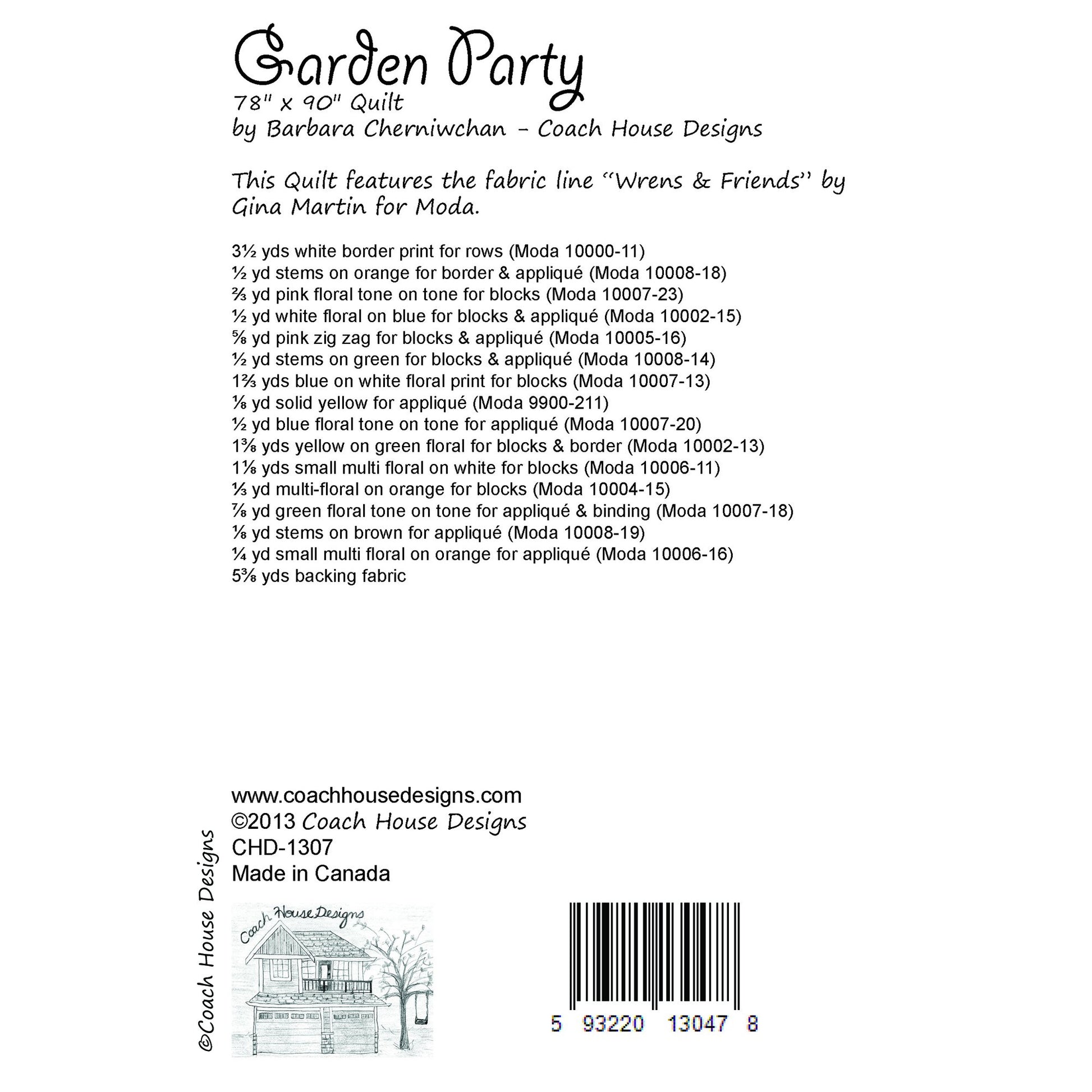 Twin Quilt ( 78" x 90") featuring "Wrens & Friends" by Gina Martin for Moda. This fabric was released in 2013 but it would suit any current whimsical fabric. Pattern is also available as a digital PDF download at a discounted rate.
