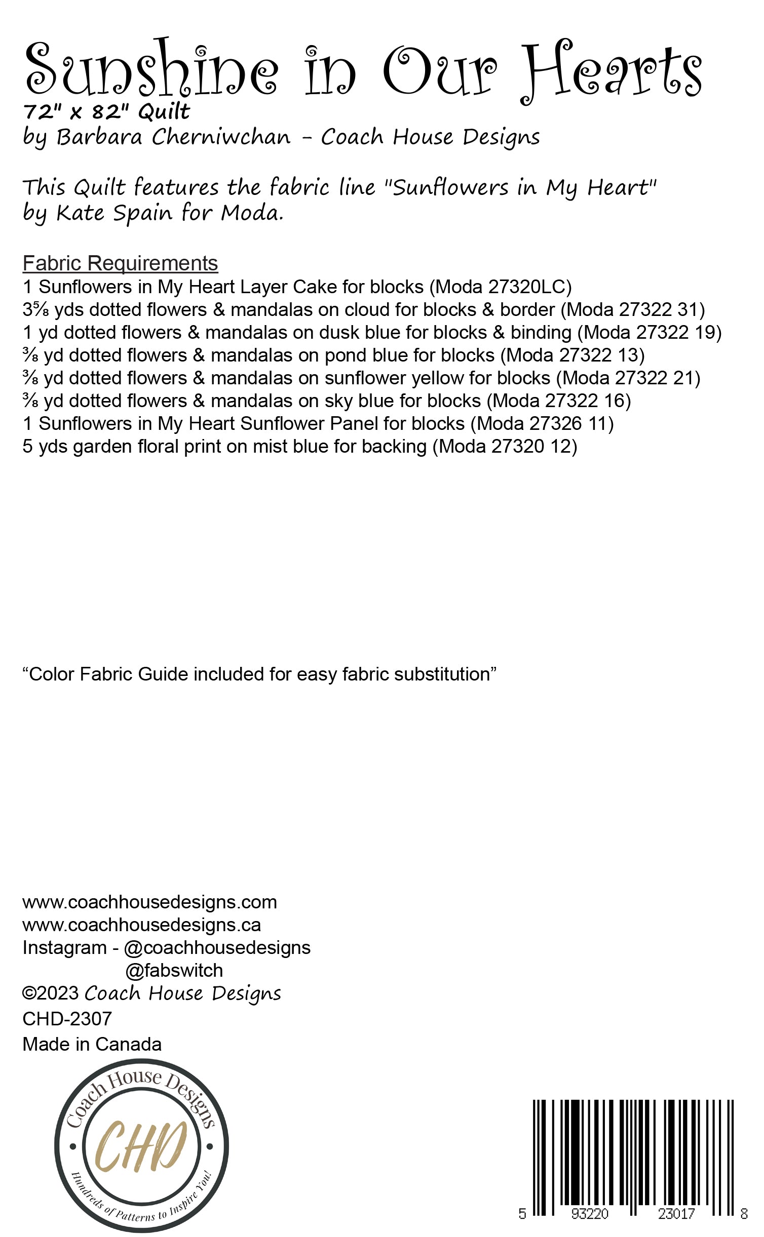 Moda Fabrics will donate a percentage of sales of this collection to the World Central Kitchen Organization. Sunflowers In My Hearts will be available in quilt shops in September 2023!
