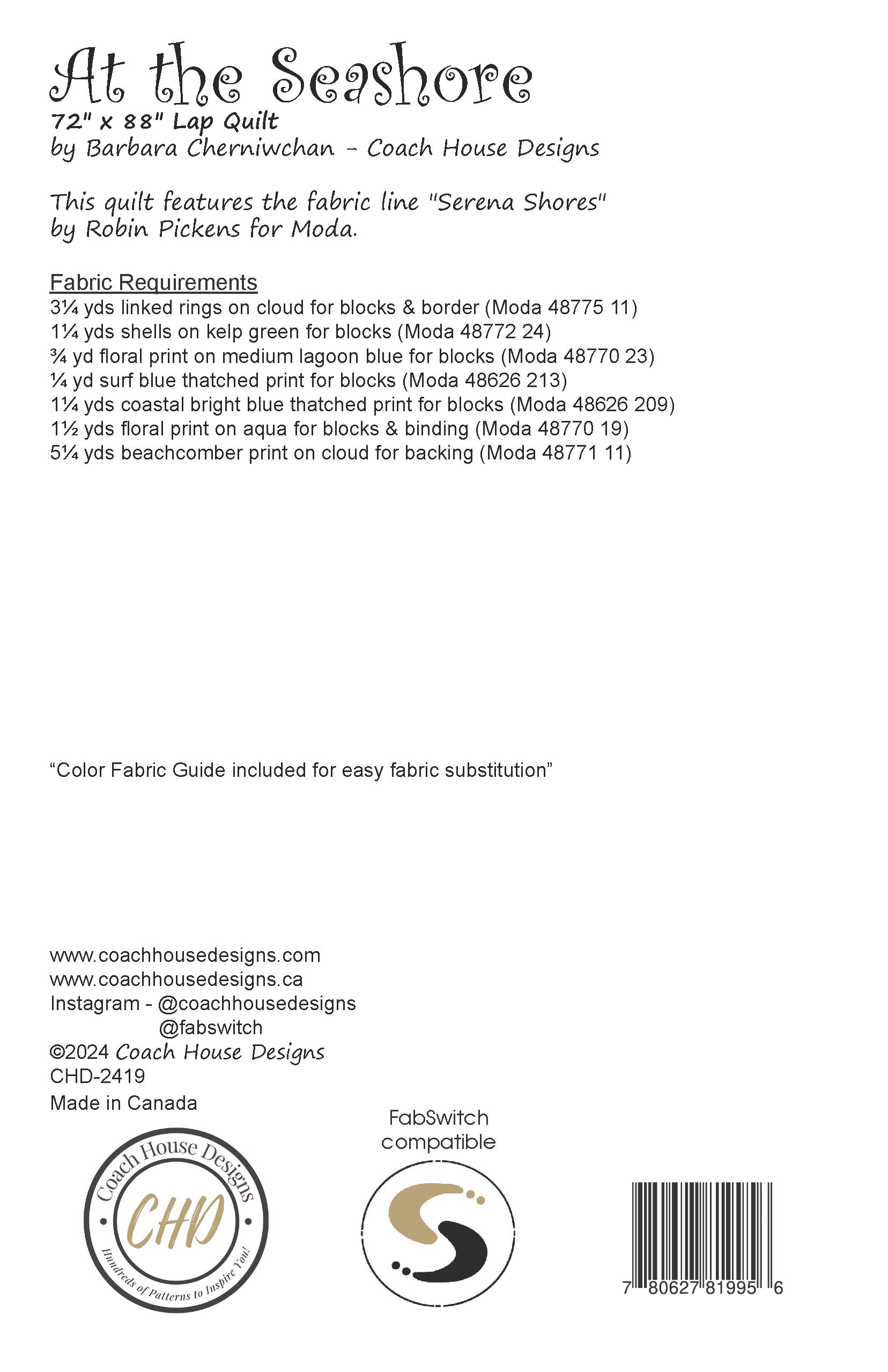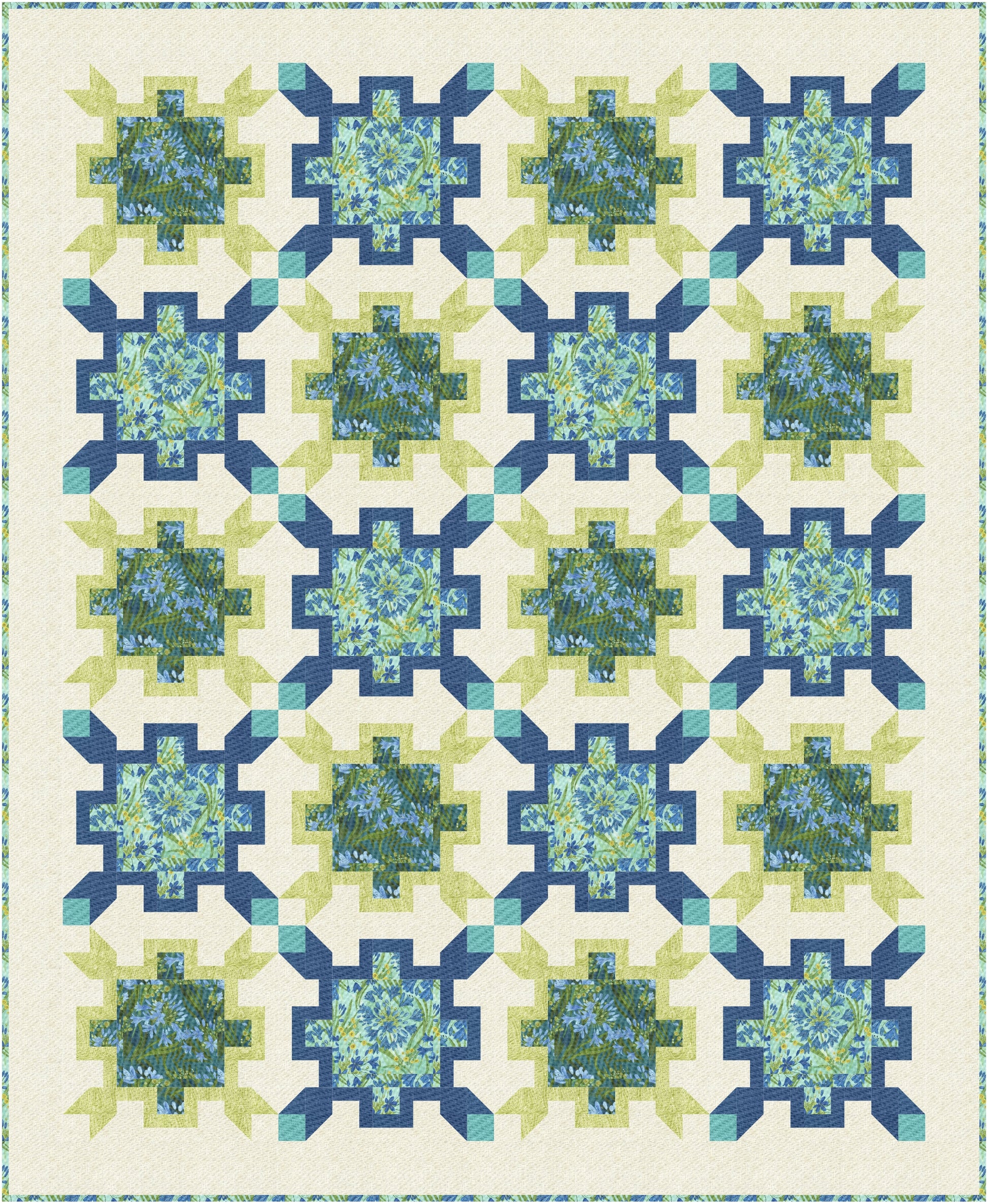 72" x 88" Large Lap Quilt Pattern featuring Robin Picken's gorgeous new fabric line "Serena Shores" for Moda Fabrics. Whether you have a coastal home or just want to decorate your home in a coastal theme, this beautiful contemporary design would be amazing draped on the back of your sofa or guest bed or thrown over your favorite chair on the porch. The block are big so this project will make up relatively quickly.