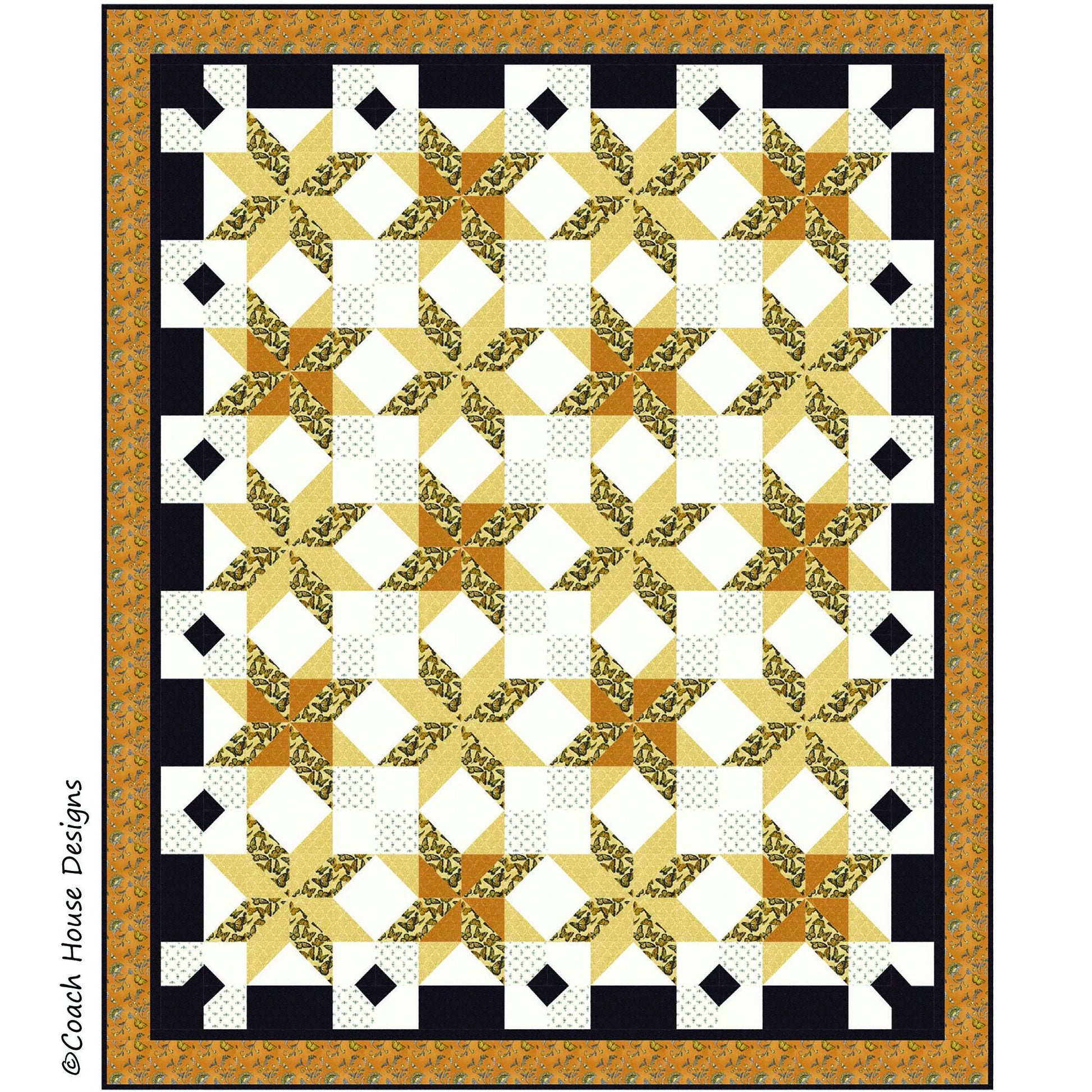 This elegant queen sized bed quilt pattern (82" x 98") features simple piecing and the fabric line "Bee Inspired" by Deb Strain.   The fabric and pattern were released in March 2017.  This quilt would be beautiful in any fabric to match your bedroom decor.