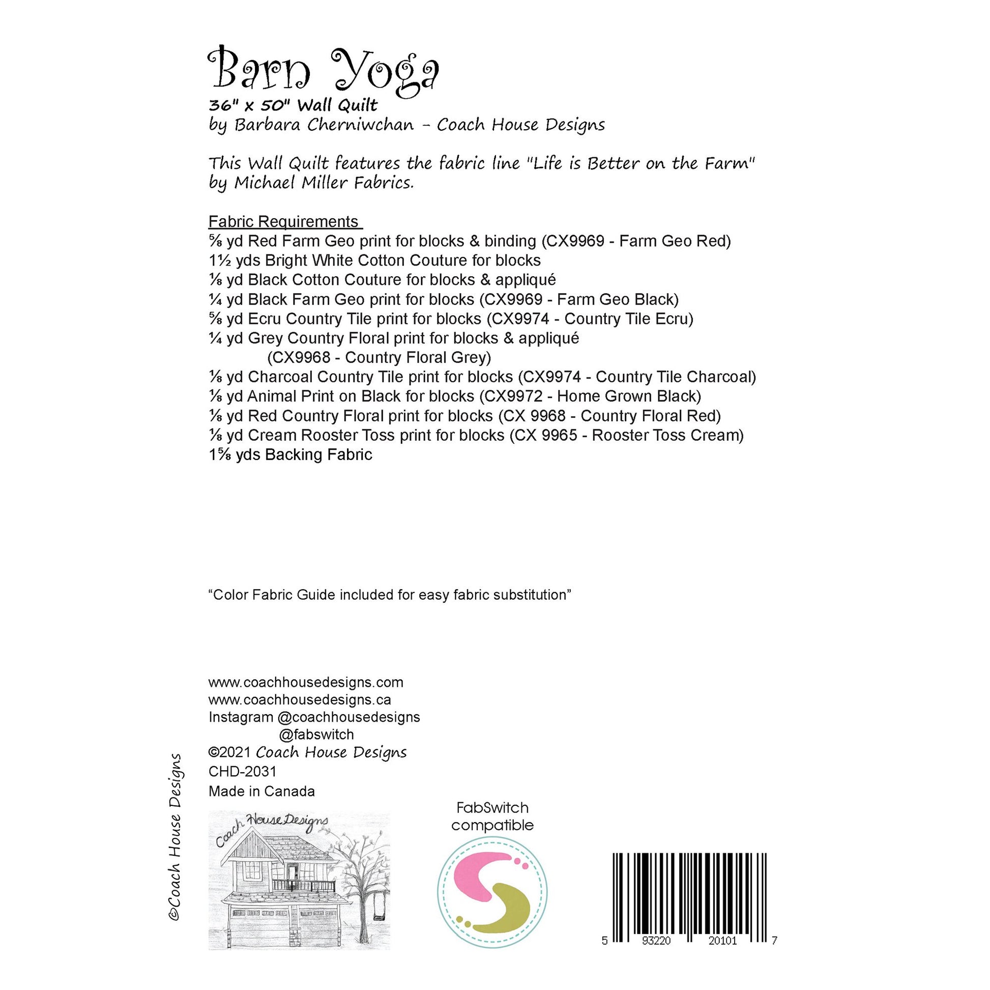 Barn Yoga is the all-season version of All Stacked Up and features "Life is Better on the Farm" fabric by Michael Miller Fabrics.  Wall quilt measures 36" x 50", is mostly piecing and not for the beginner quilter.  Fabric will be in stores August 2021.