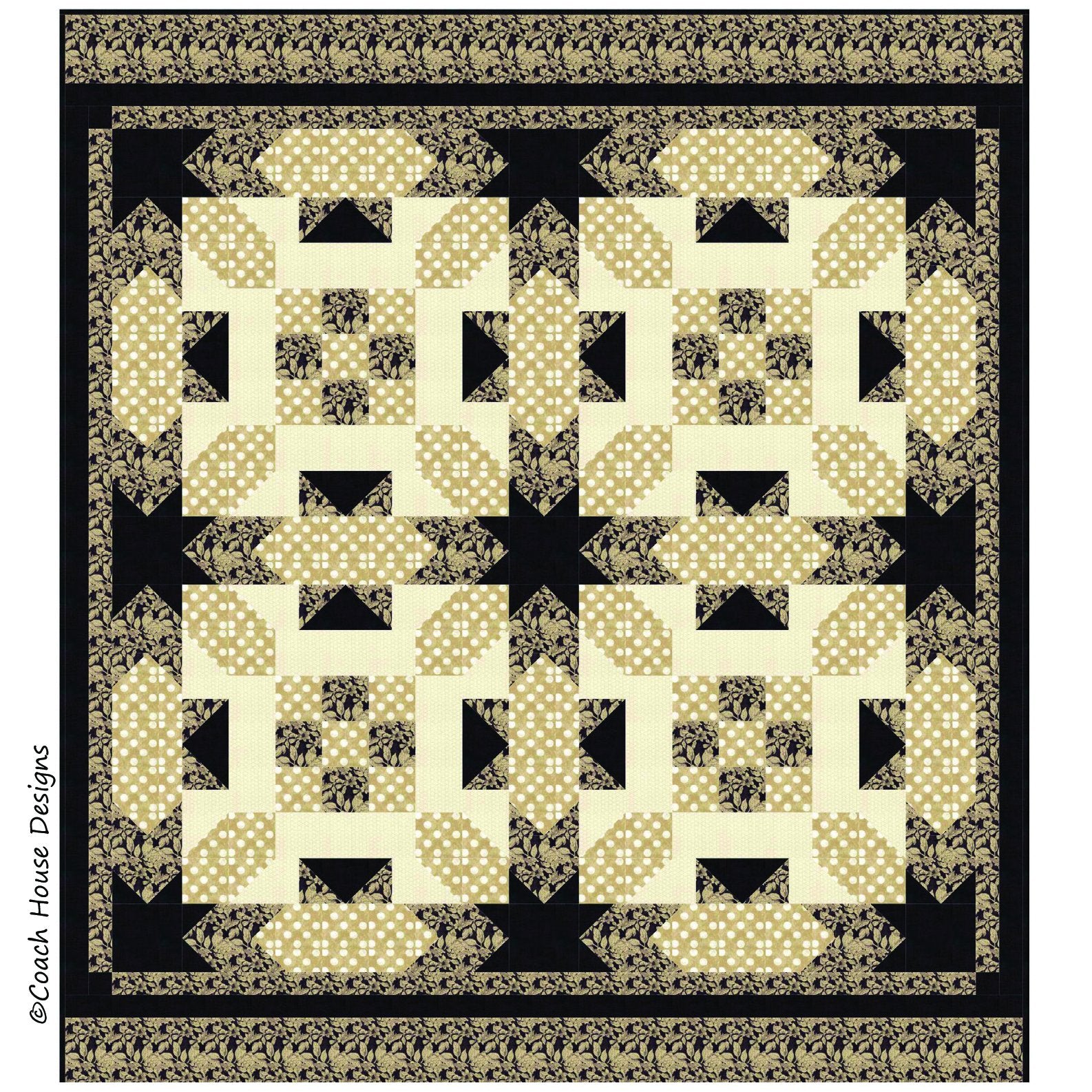 This elegant quilt could be for a double or queen size bed at 82" x 94".  It is easy and quick to piece with large blocks. It is shown in "Maven" by Basic Grey but would look great in any fabric.