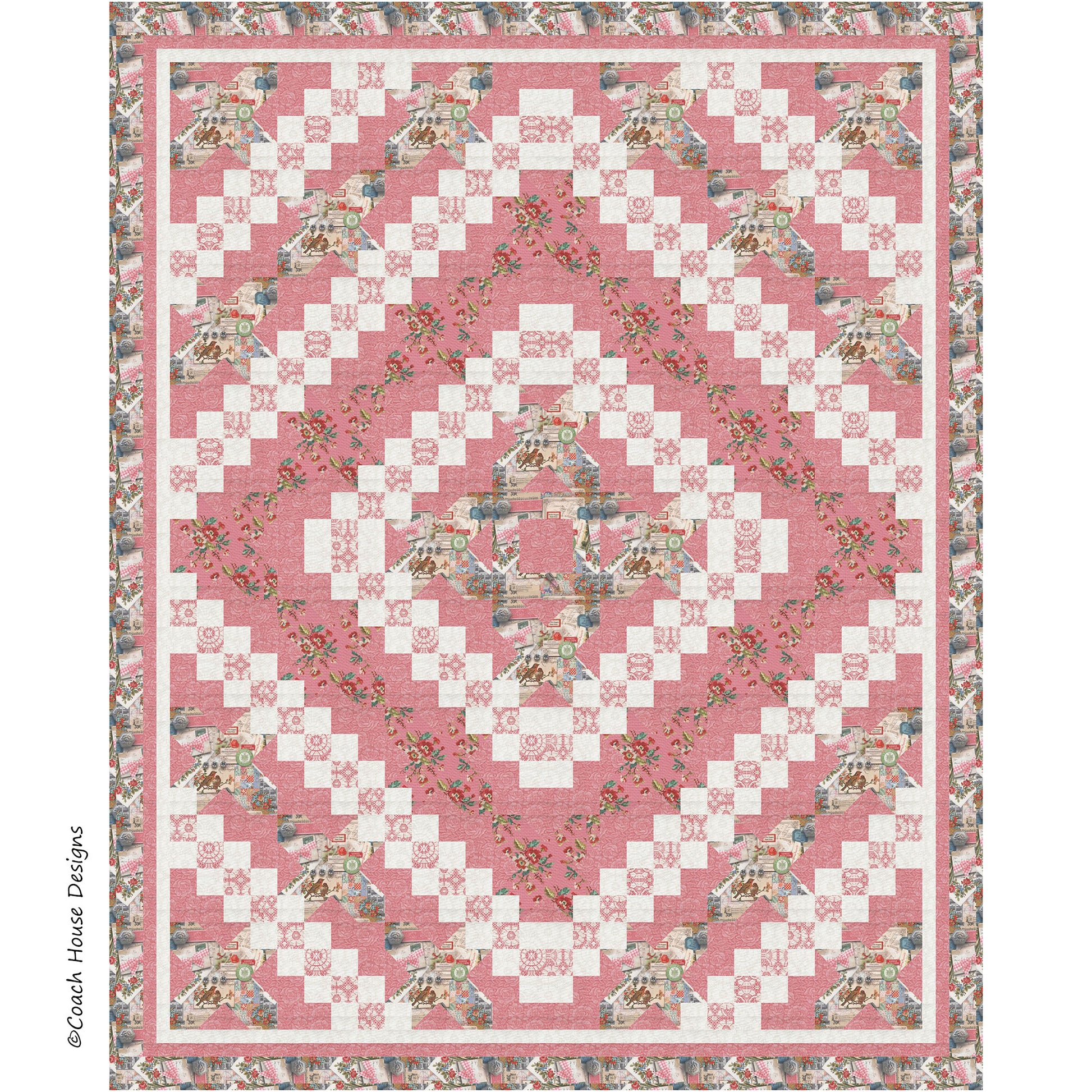 64" x 80" Lap Quilt featuring the fabric line "Leather & Lace and Amazing Grace" by Cathe Holden for Moda. The pattern is built with Star Blocks and strip piecing.