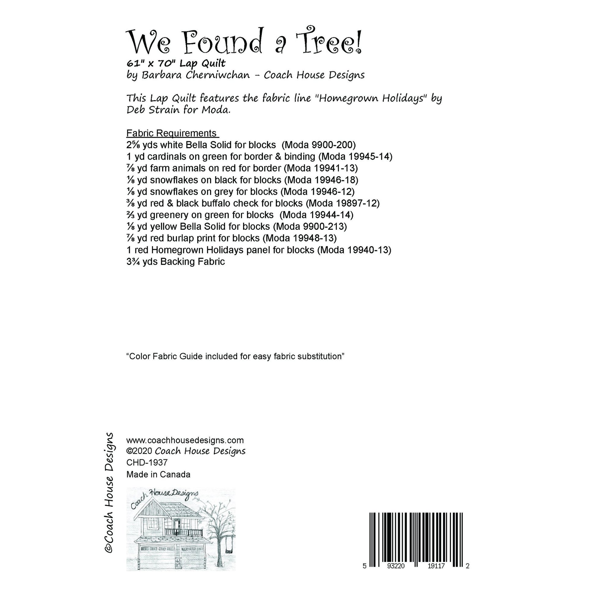Nothing is more fun than heading to the tree farm to pick out a Christmas Tree! This fun lap quilt (61" x 70") uses the Barn Red panel from Deb Strain’s Homegrown Holidays fabric line. The  fabric was released in June 2020.