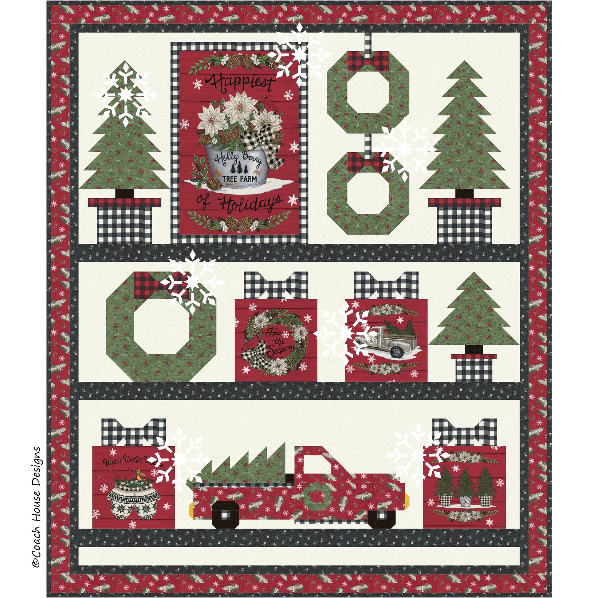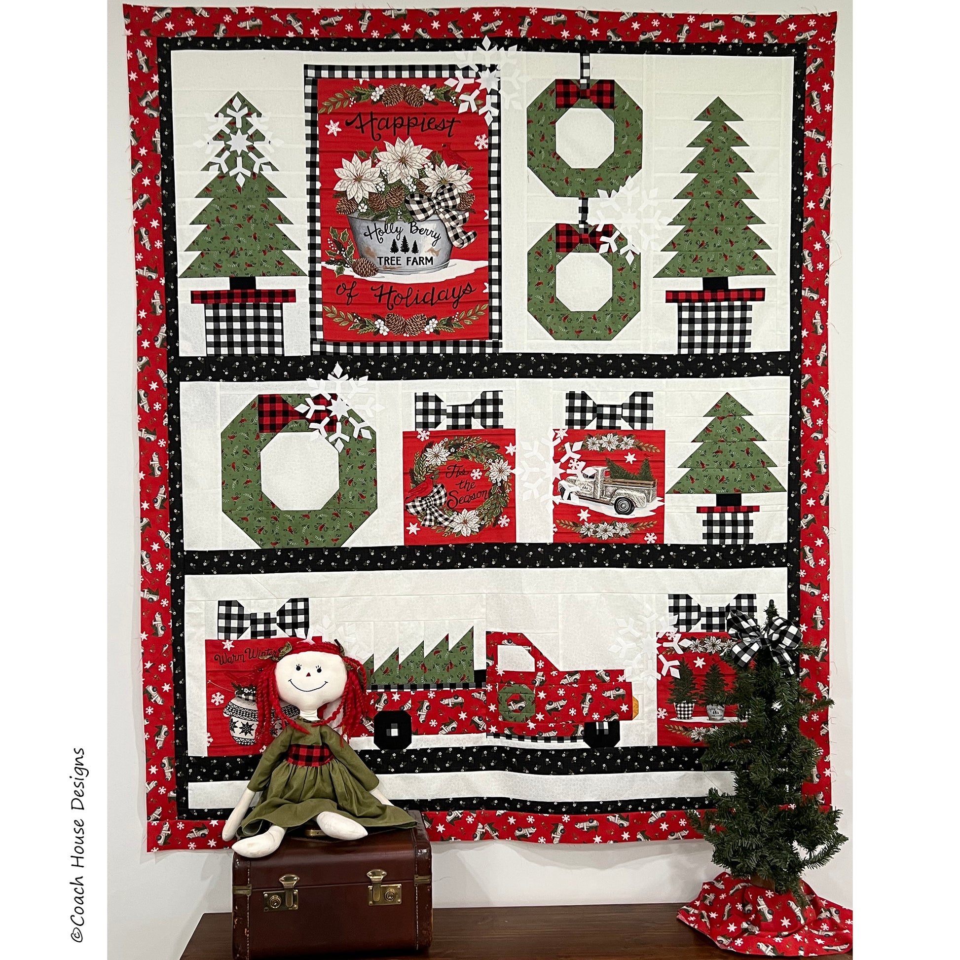 The pattern is available now and Holly Berry Tree Farm fabric will be shipping to your favorite quilt shop in May 2022!