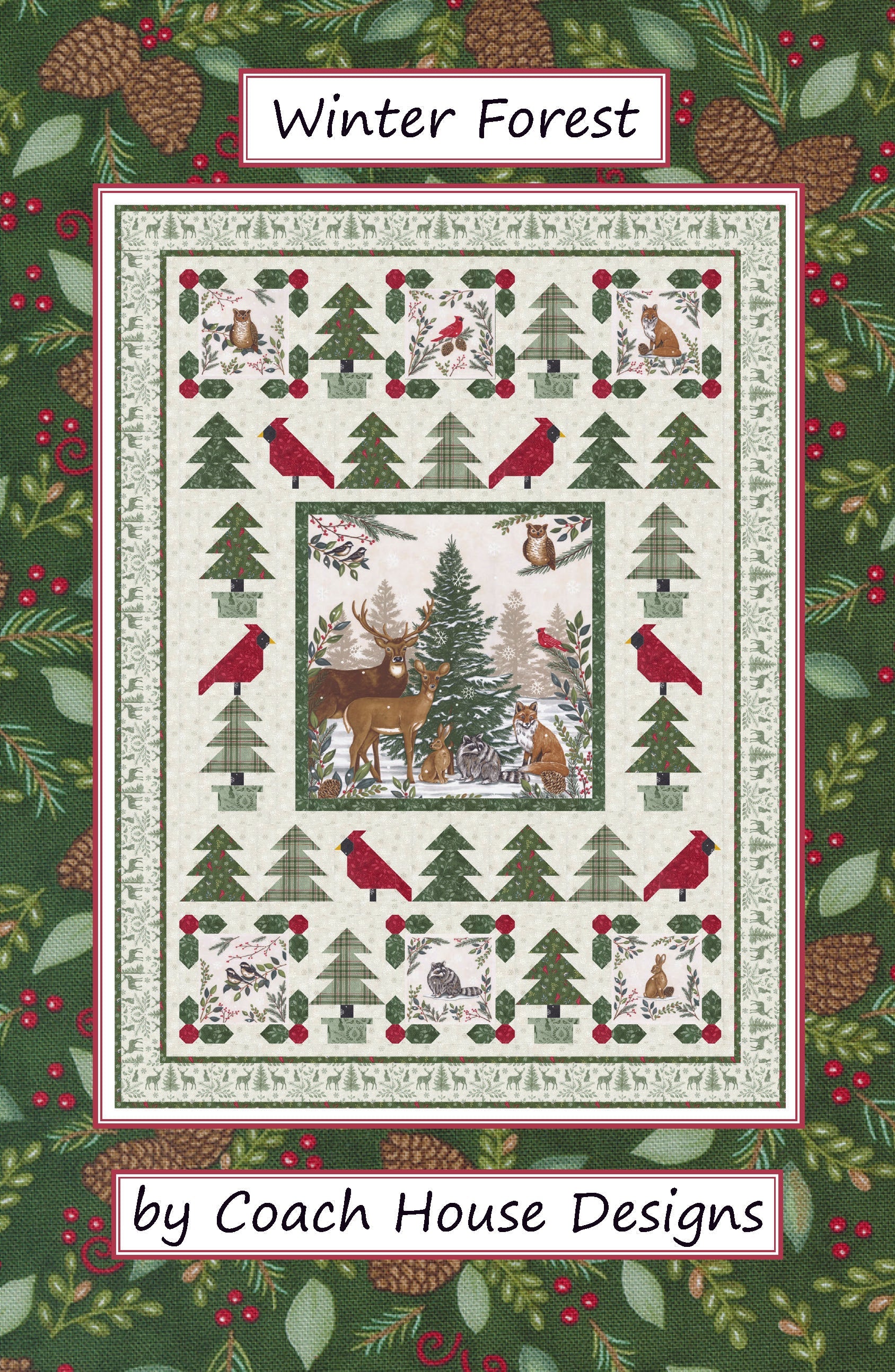 Finishing at 51" x 69", this lap quilt is all piecing and no applique. It uses the panel from the fabric line "Woodland Winter" by Deb Strain for Moda.