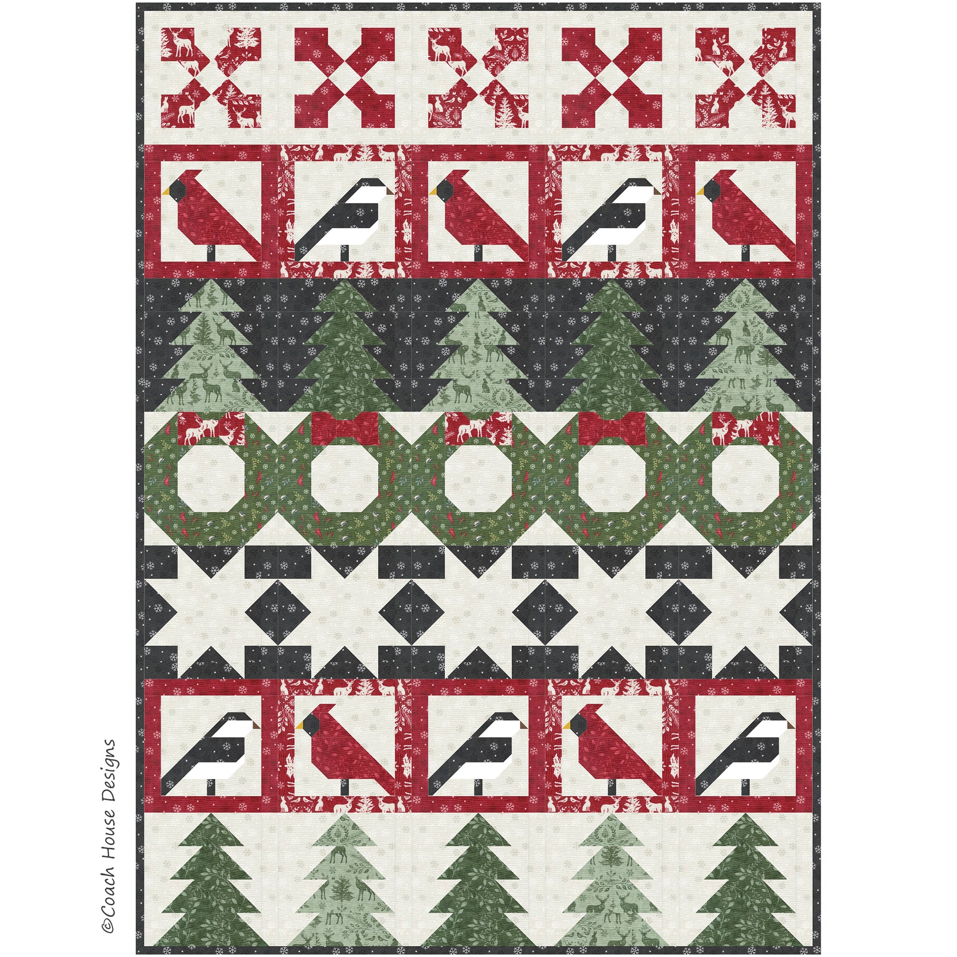 Finishing at 40" x 56", Woodland Birds uses "Woodland Winter" by Deb Strain for Moda fabrics. The pattern would pair nicely with any winter-themed fabric.