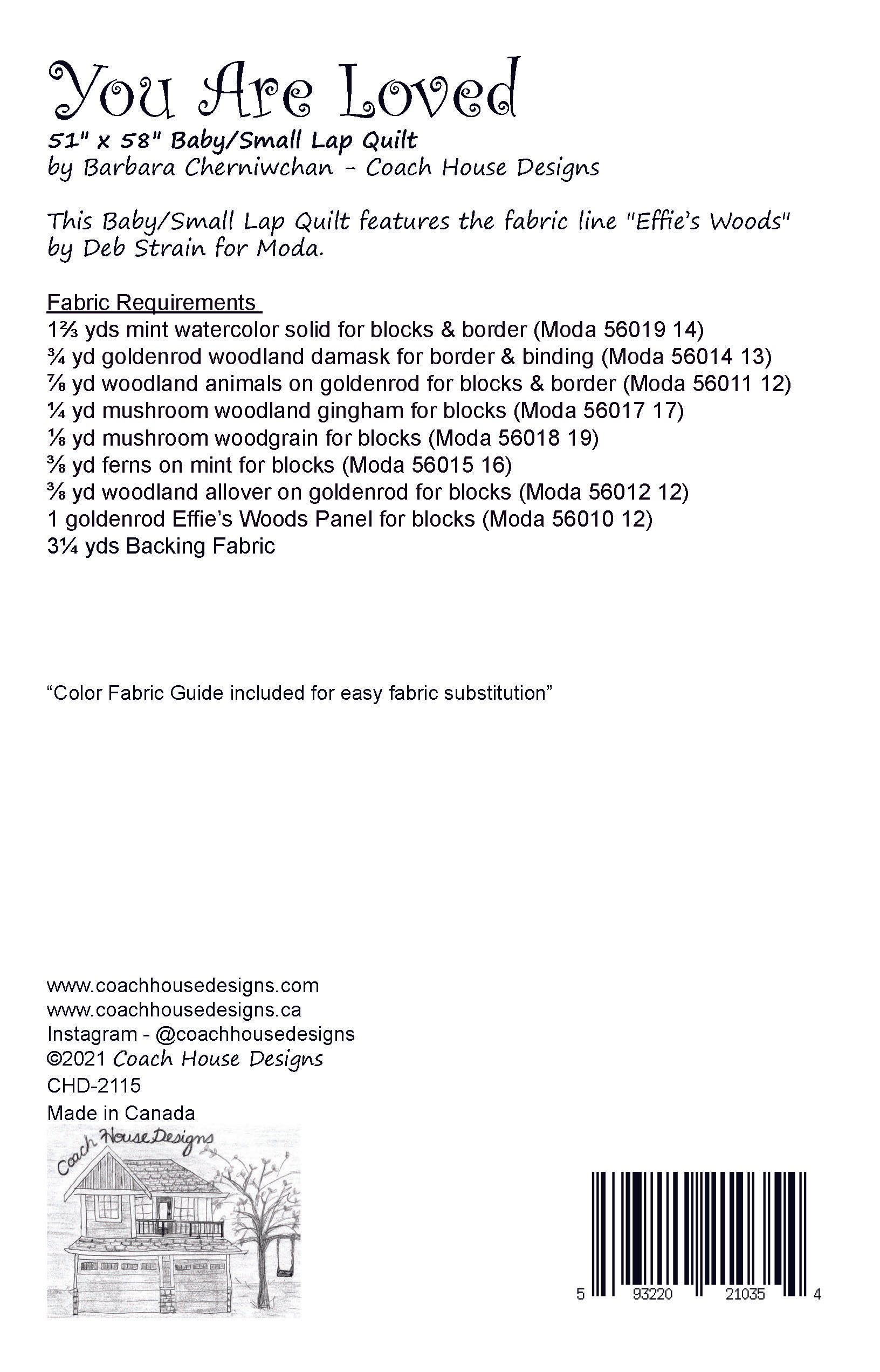 This 51" x 58" baby/child quilt uses the yellow panel from Deb Strain's fabric line "Effie's Woods" for Moda.   The quilt is all pieced and pictures hot air balloons floating above "Effie's Woods".  Pattern is available now and fabric will be in stores early 2022.