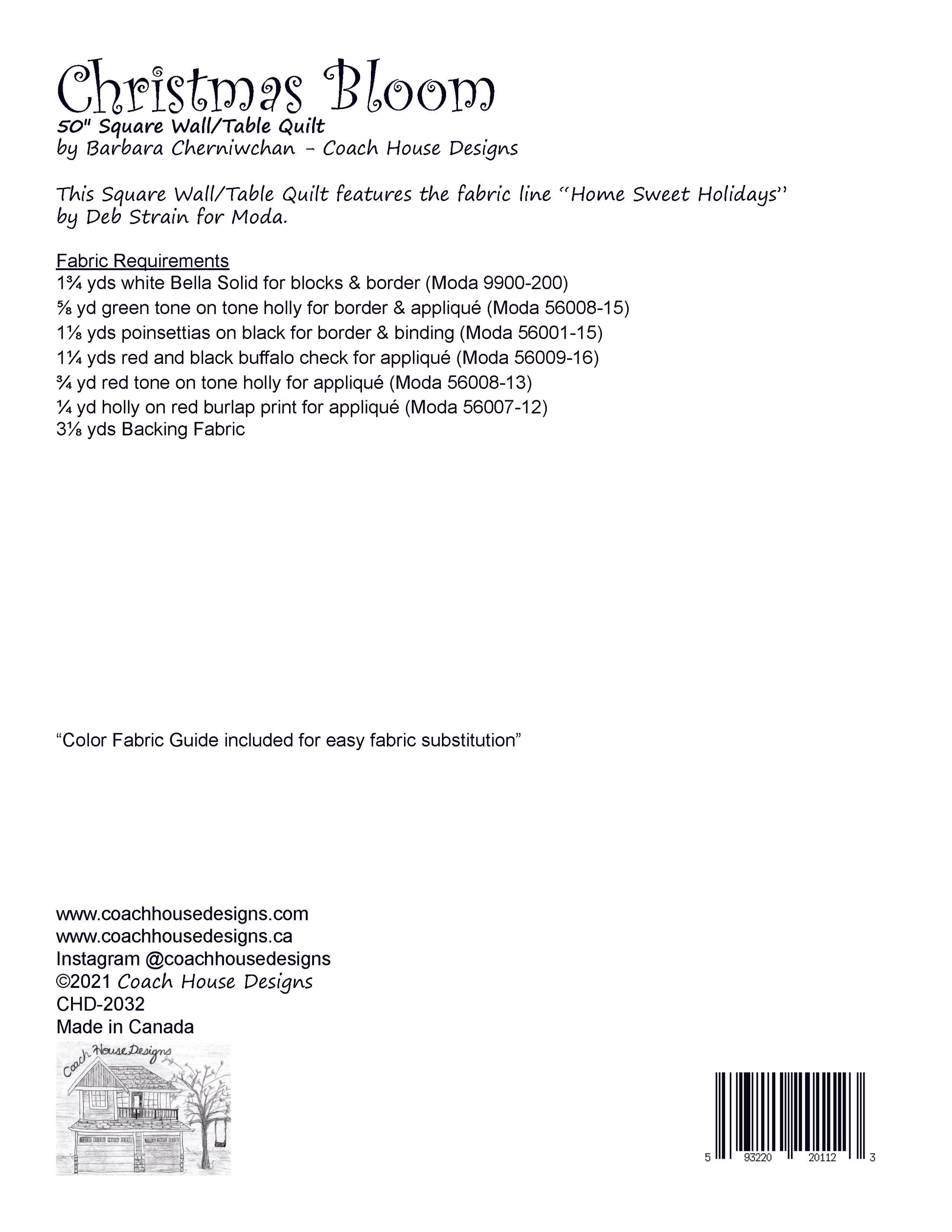 This 50” square Wall Quilt of a framed large appliqué poinsettia features Home Sweet Holidays by Deb Strain. This would make a beautiful addition to your holiday décor. The fabric will be in stores in fall 2021!
