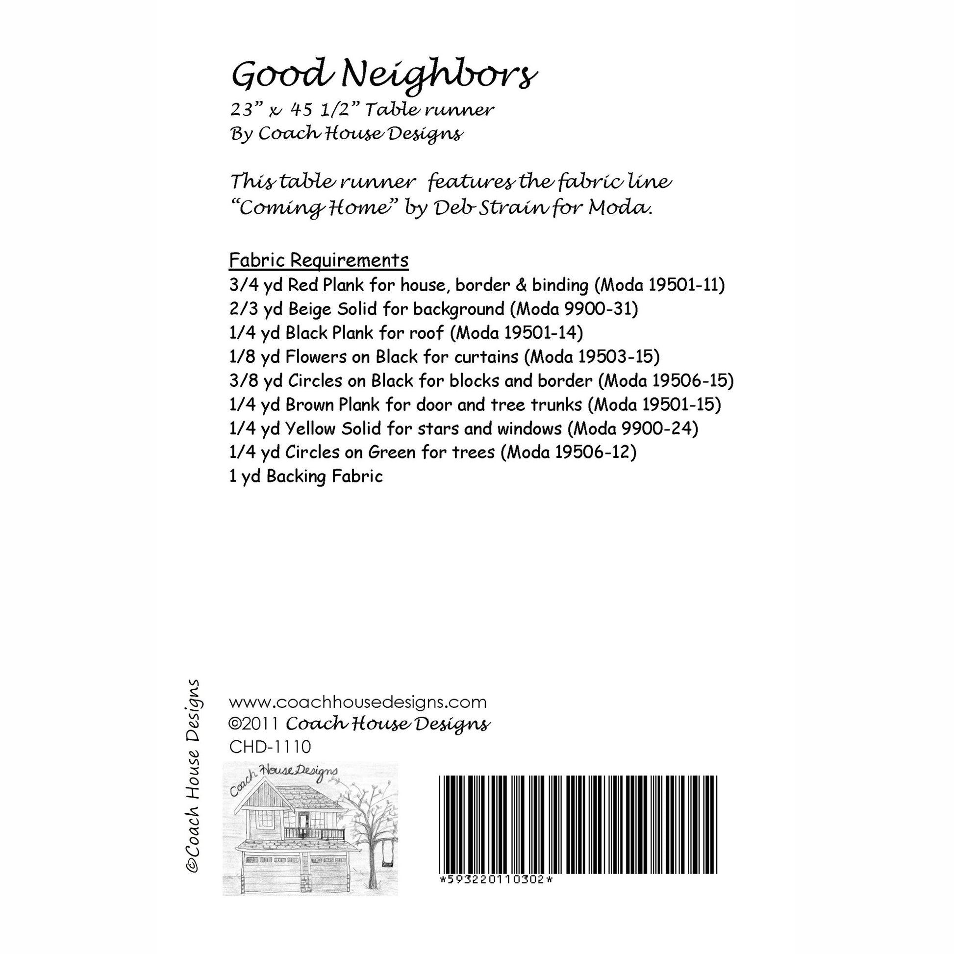 Salt box houses for your table. This neighborly table runner measures 23" x 45 1/2". Piecing with a little bit of applique.