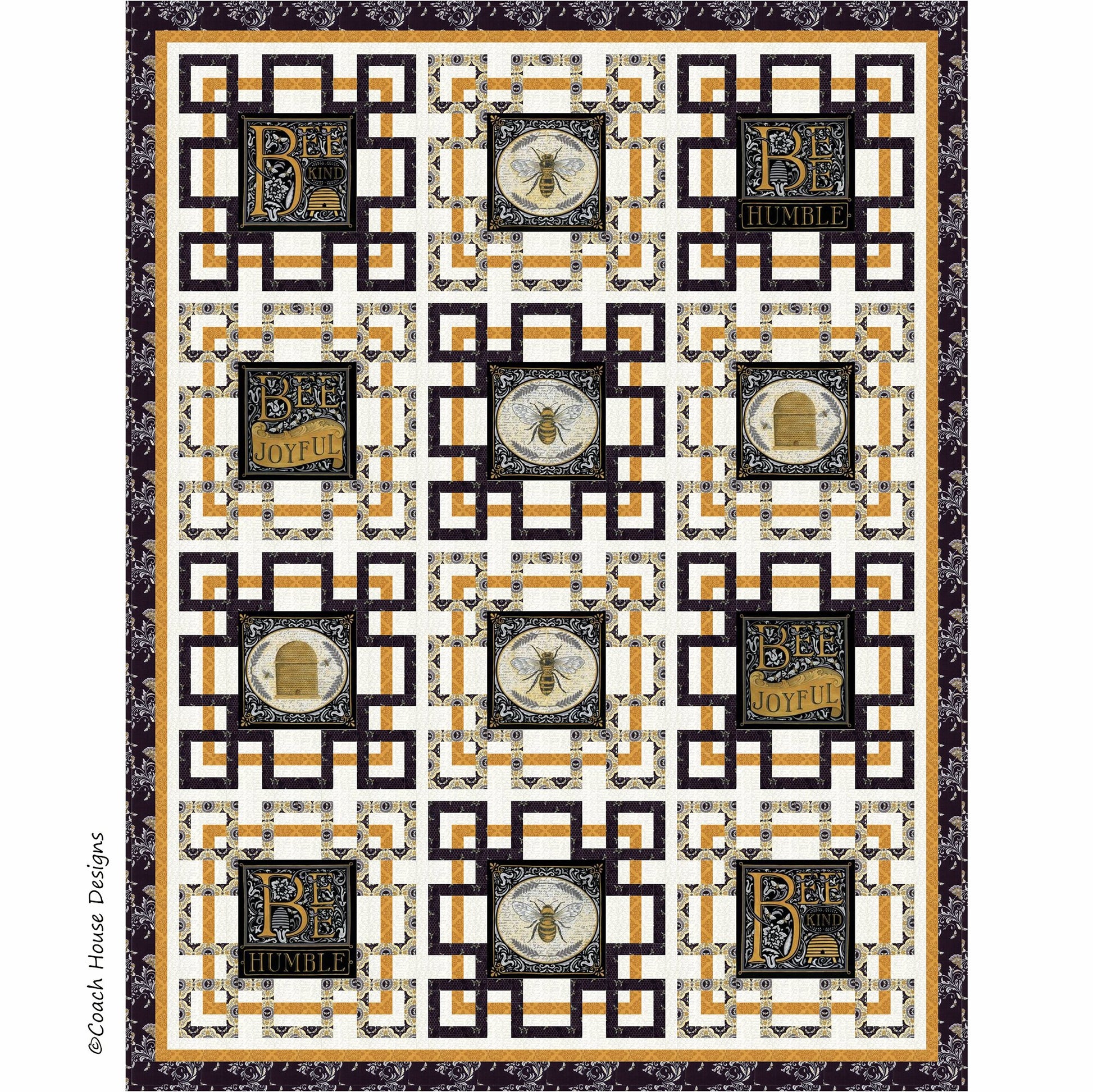 This twin quilt (70" x 91") pattern features "Bee Joyful" by Deb Strain by Moda. The pattern includes instructions to make the quilt in 3 color ways all of which use 2 "Bee Joyful" panels. If you are looking to substitute the panels, you will need 10 1/2" squares.