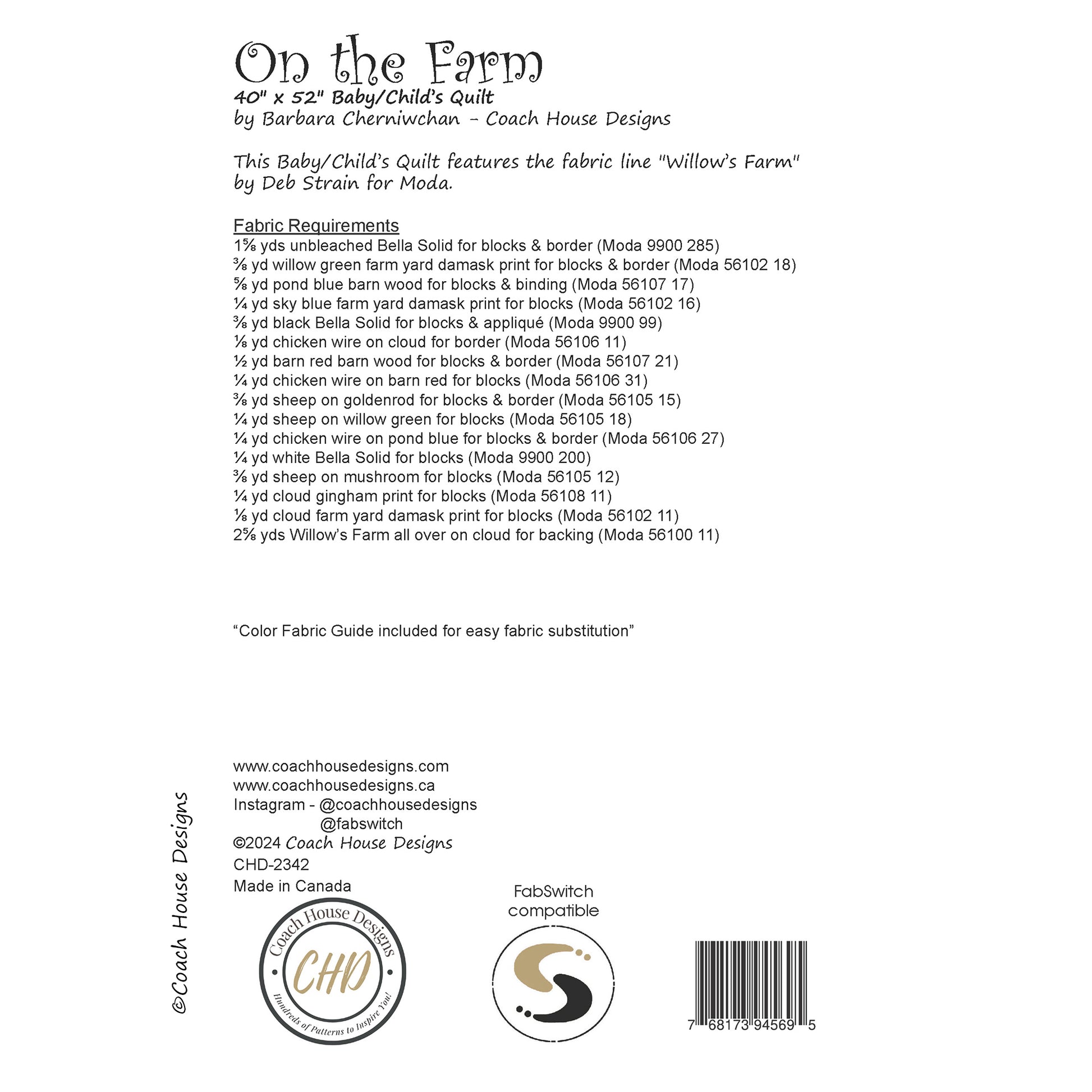 This adorable 40" x 52" will have you saying E-I-E-I-O! Pieced together with a collection of the cutest little farm critters ever, my new pattern "On the Farm" features Deb Strain's fabric line "Willow's Farm".