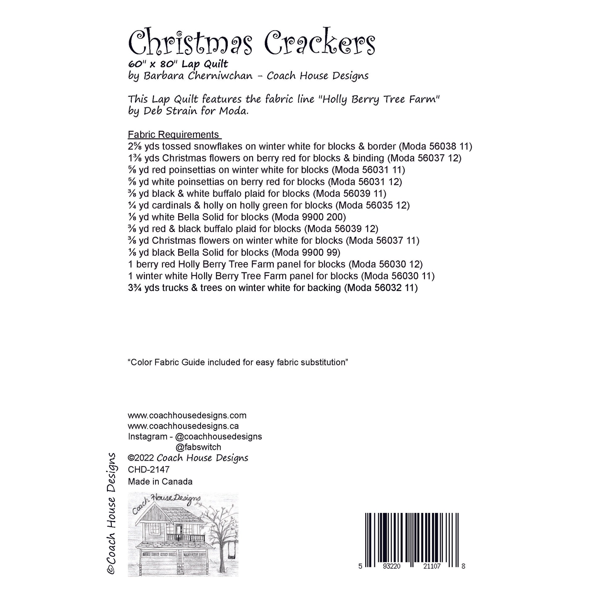 This 60" x 80" Christmas lap quilt features the fabric line "Holly Berry Tree Farm" by Deb Strain for Moda Fabrics and uses the red and winter white panel from the line. Crackers on the table for Christmas dinner are such a special way to make the meal extra festive, especially when everyone puts on their paper crowns!