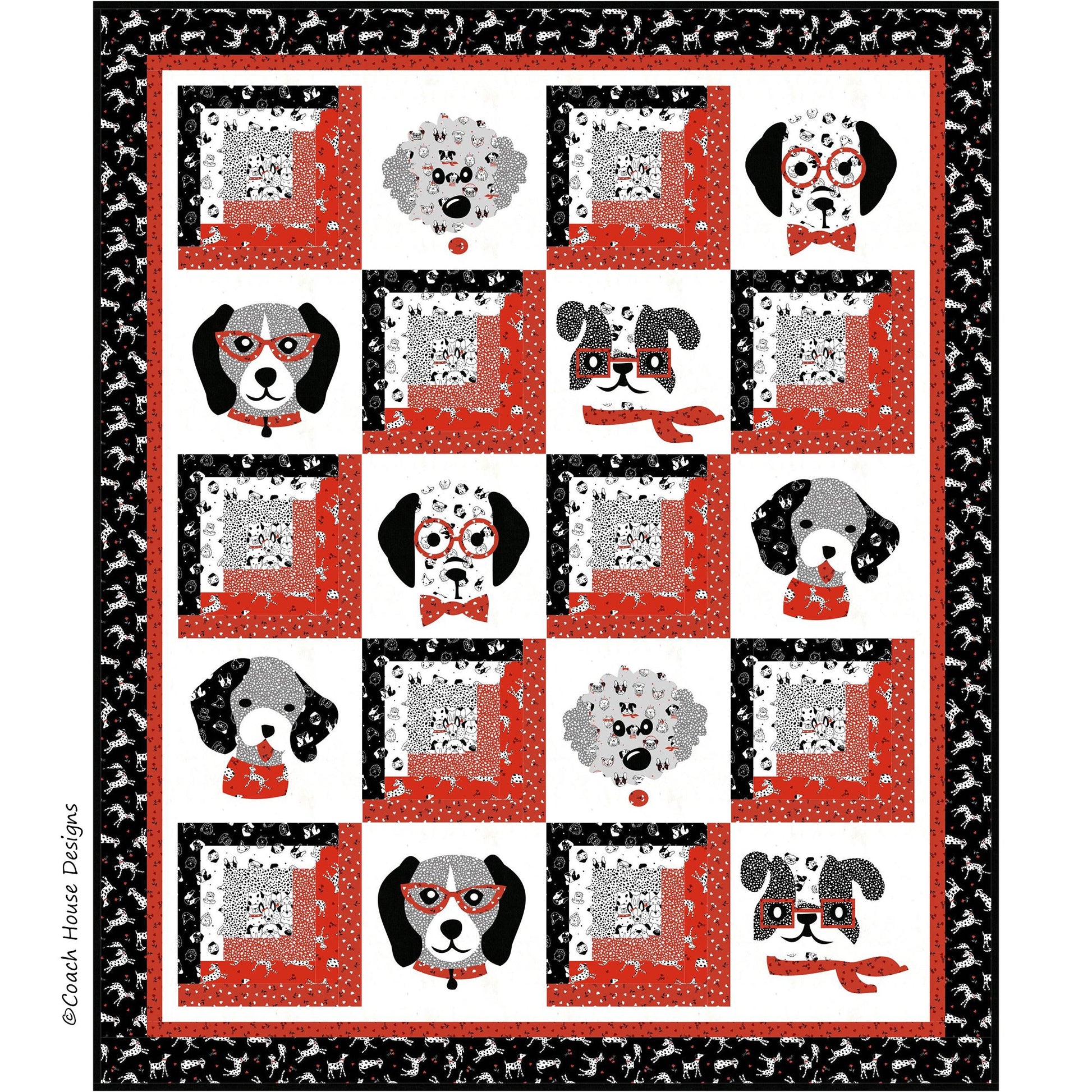 This 58" x 70" Lap Quilt features the fabric line "Bow-Wow-Wow" by Michael Miller Fabrics. The applique are inspired by the adorable artwork on this fabric line.  Pattern is available now and the fabric will be at your favorite quilt shop in Summer 2022.