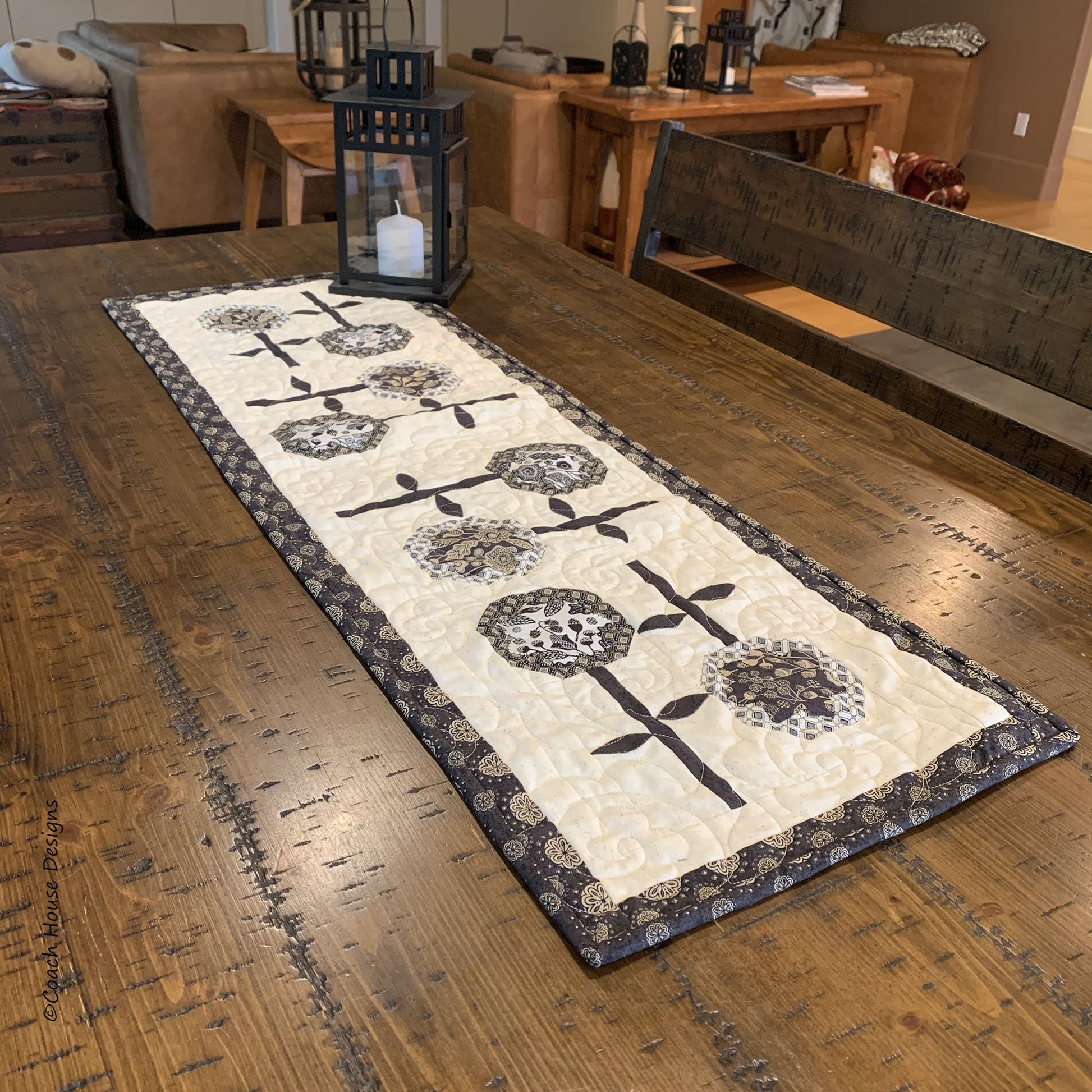 I absolutely love the elegance of this lap quilt (58" x 78") and matching table runner (14" x 44").  The pattern includes instructions for both products and they feature "Maryland" by Kathy Schmitz for Moda. If all that applique scares you, try the table runner first.  You will be so delighted that you will have to make the lap quilt too.  The fabric will be in stores in February 2021.