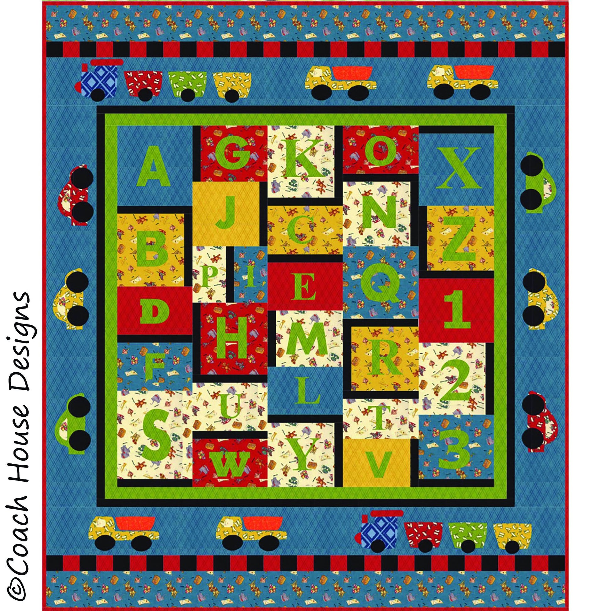 This child's quilt measures 62" x 75" and features ABC 123 by American Jane. The bold primary colors and vintage fabric make for a classic combination. The pattern and fabric were released in 2013 but American Jane has continued to release amazing vintage prints since then that would make great substitutes.