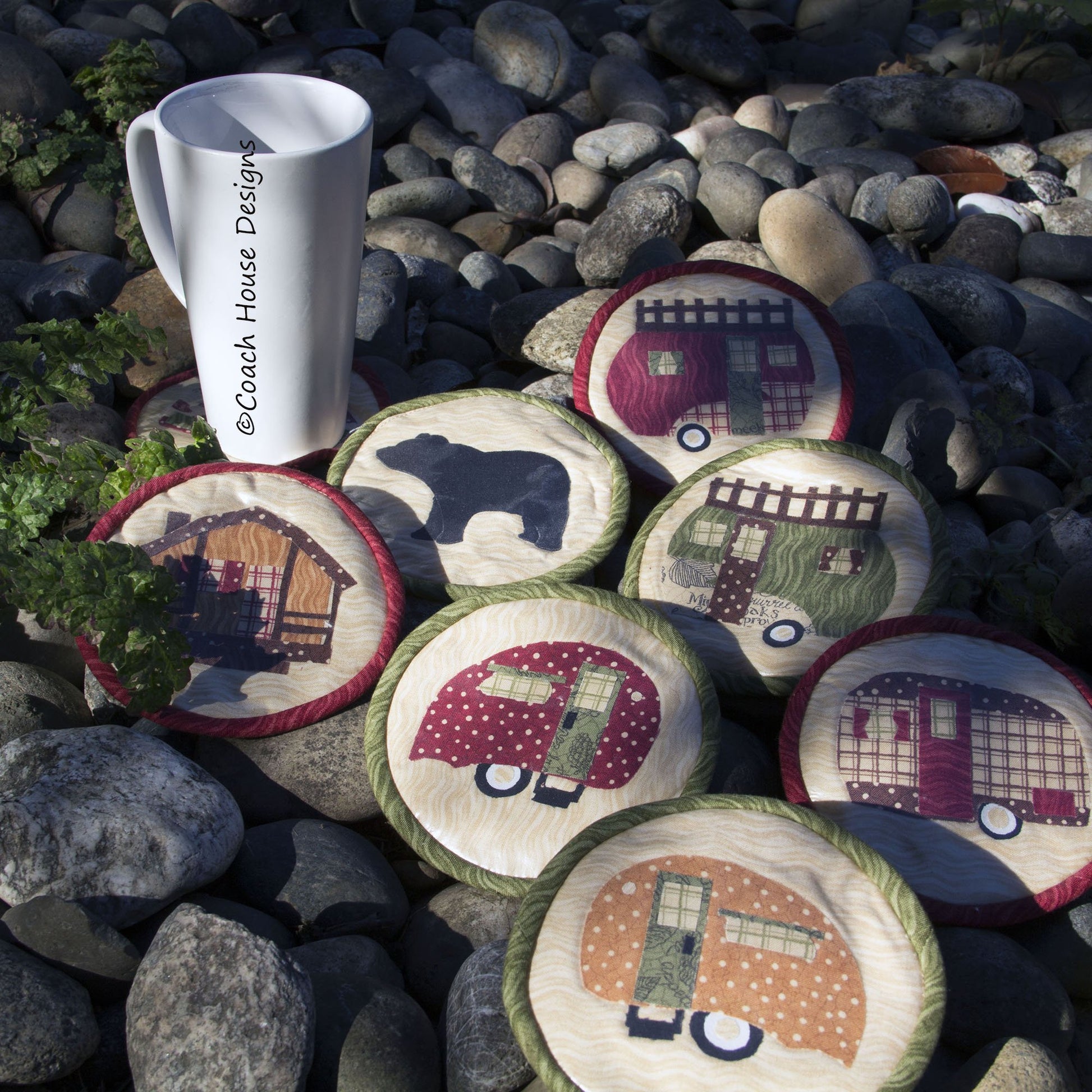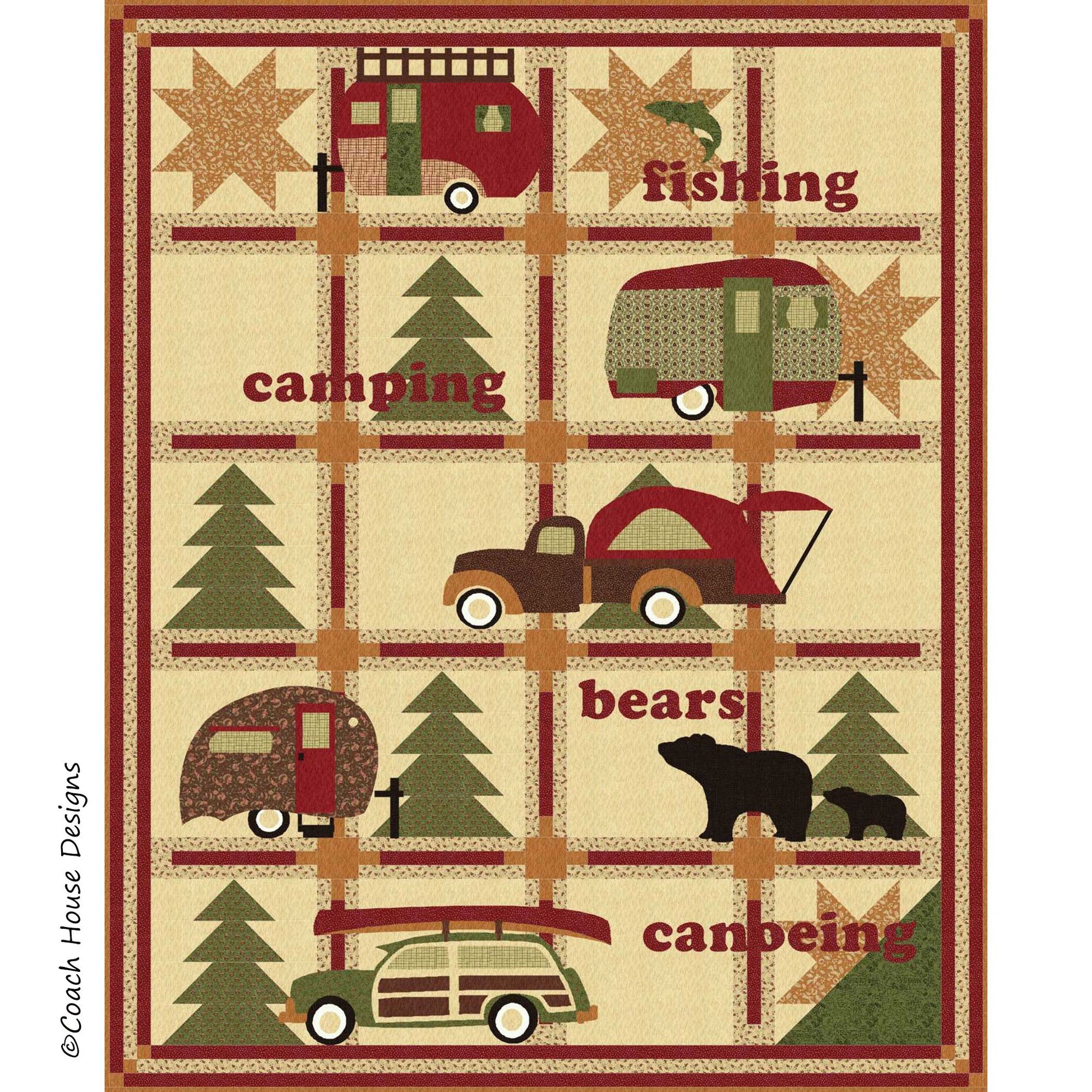 5 Projects by Coach House Designs and Kathy Schmitz - Lap Quilt 63" x 78", Wall Hanging 39" x 21", Table Runner 53" x 17", 8 Coasters and 12" x 16" Embroidered Pillow. Pattern features "Oak Grove Lane" by Kathy Schmitz but is FabSwitch compatible allowing you to switch out the fabrics and see your new design at app.fabswitch.com. 50% of the profits to the designers will be donated to the Red Cross in Canada and the US.