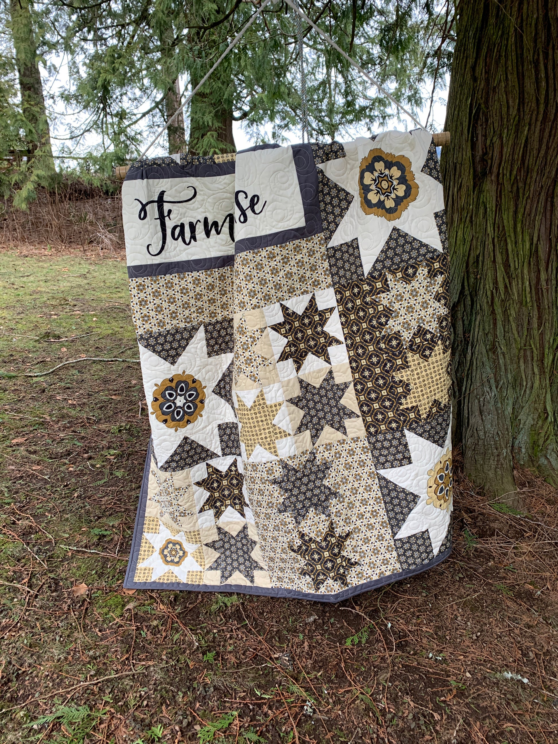 Fun and simple 62" x 82" lap quilt featuring my Modern Farmhouse fabric line for Clothworks. This pattern uses the Modern Farmhouse panel so everything on the quilt that looks like applique is not! Modern Farmhouse fabrics will be arriving at your local quilt shop in March 2021, but the pattern is available now!