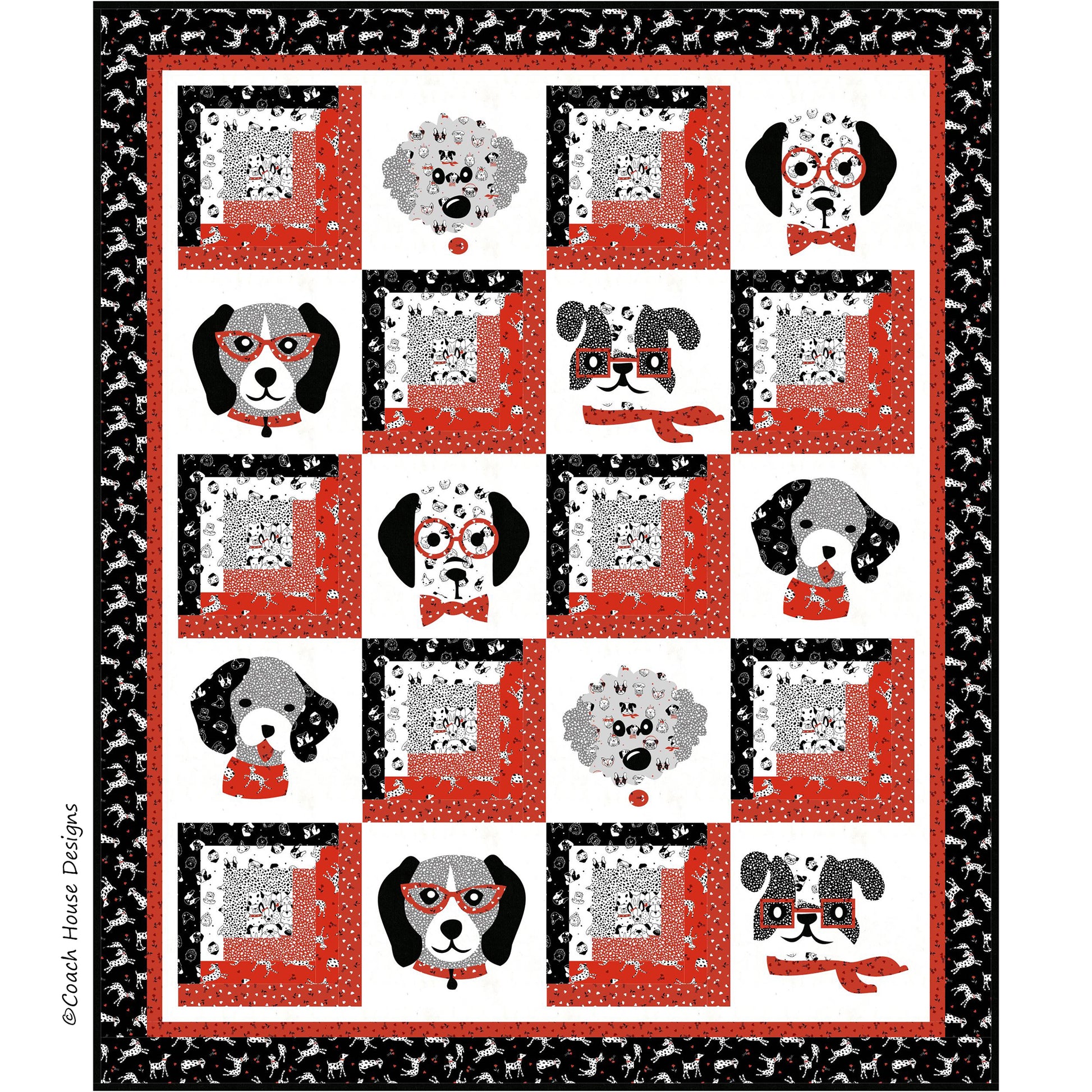This 58" x 70" Lap Quilt features the fabric line "Bow-Wow-Wow" by Michael Miller Fabrics. The applique are inspired by the adorable artwork on this fabric line. Pattern is available now and the fabric will be at your favorite quilt shop in Summer 2022.