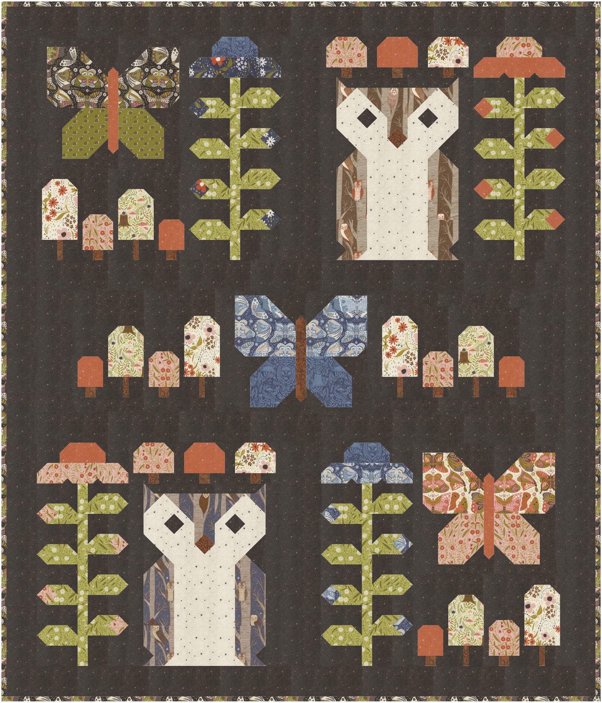 Bring a touch of woodland whimsy to your stitching with Garden Owls, a charming new quilt pattern designed to celebrate the magic of late summer and the cozy transition into fall. Featuring delightful blocks of mushrooms, butterflies, owls, and flowers, this quilt is a storytelling journey in stitches.