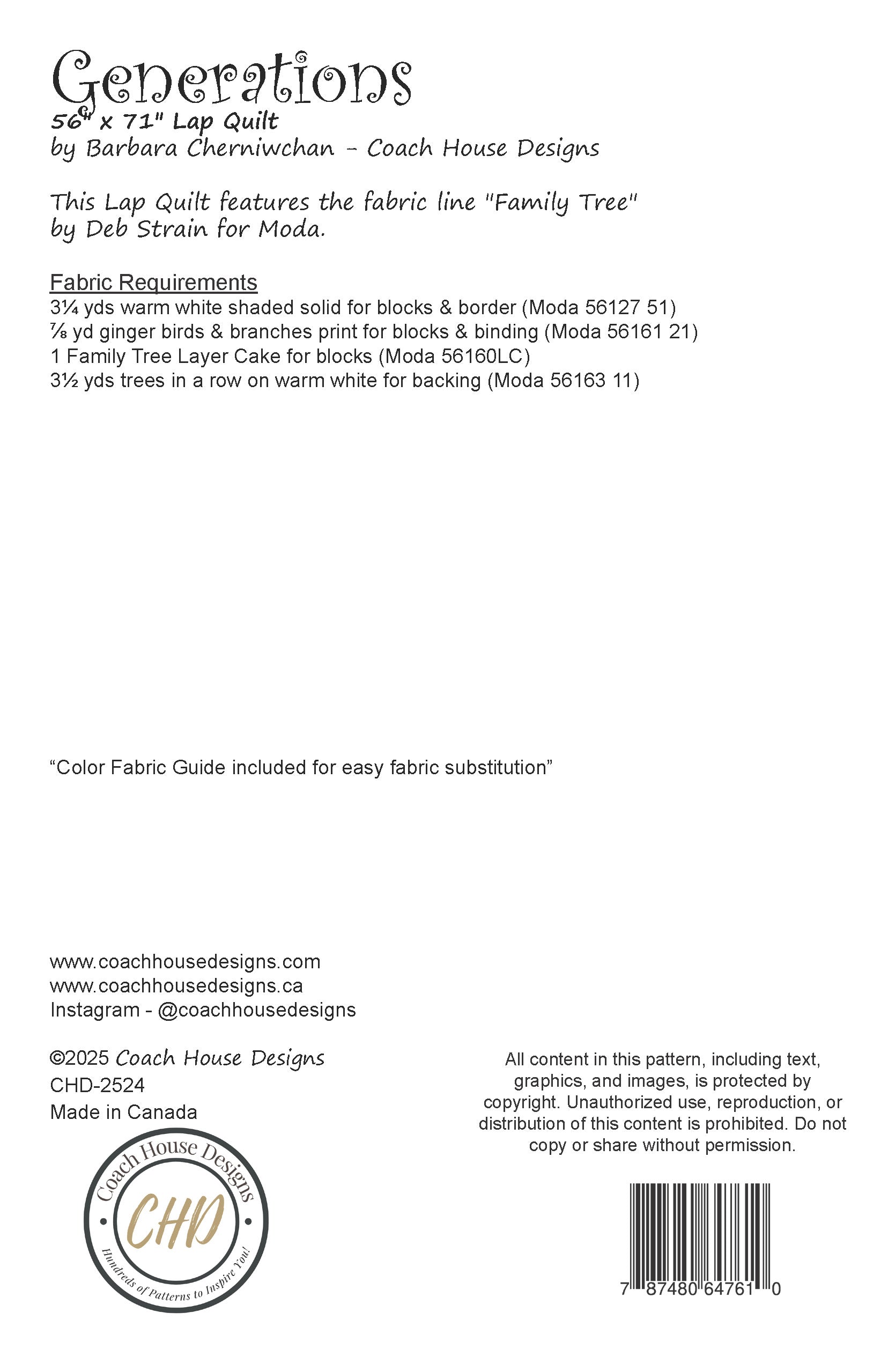 Whether displayed on a wall, draped over a sofa, or wrapped around a loved one, Generations speaks of shared memories and enduring love. My Family Tree by Deb Strain for Moda Fabrics will be shipping to your favorite quilt shop in March 2026!