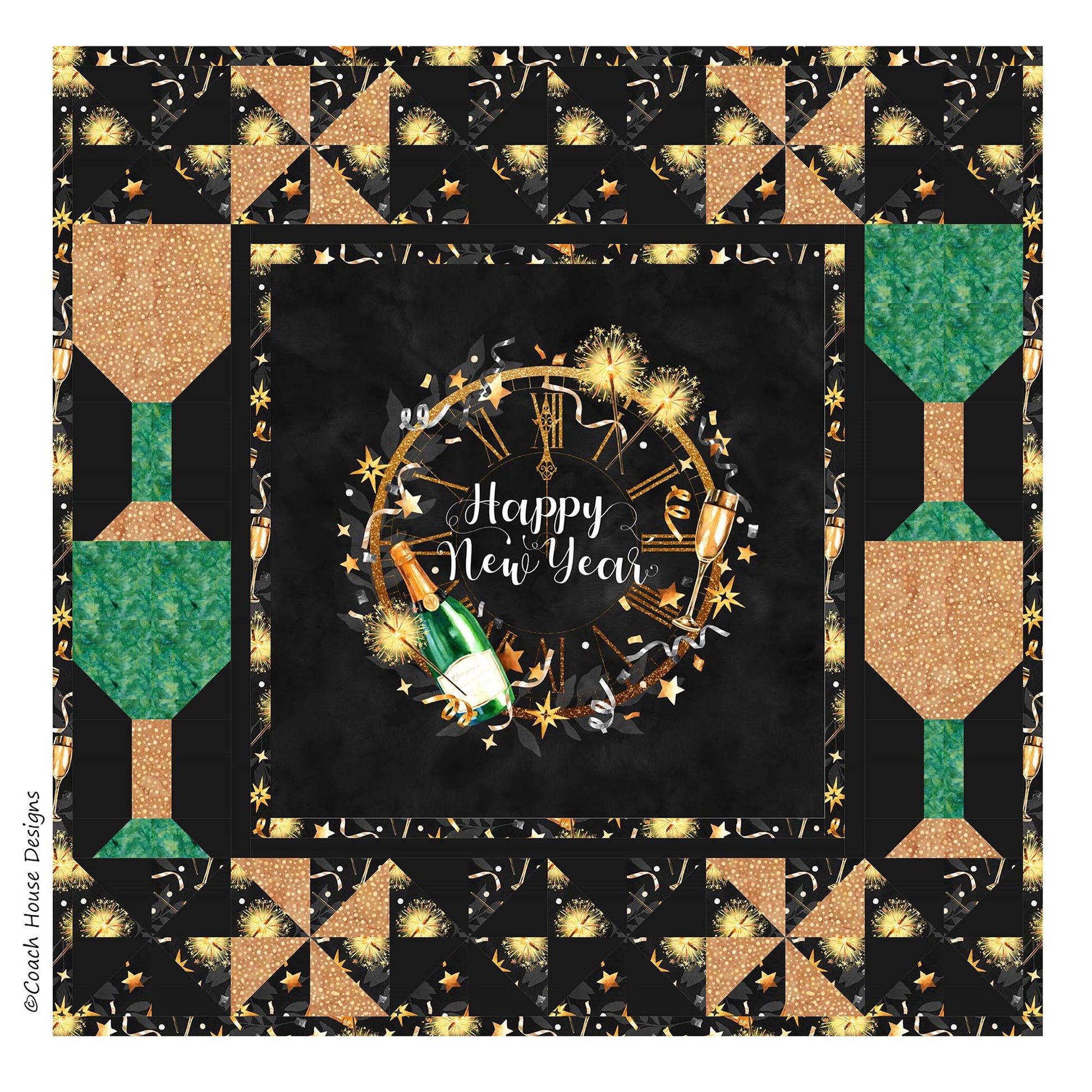 This pattern includes instructions to make 3 - 24" table/wall quilts to celebrate January - Happy New Year, February - Struck by Cupid and March - Happy Go Lucky. Fun monthly projects to help celebrate special occasions! Features Celebrate 2.0 by Hoffman Fabrics.