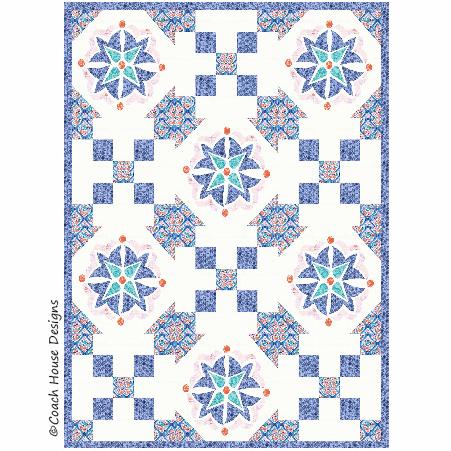 This 68" x 76" lap quilt features Voyage by Kate Spain and has large blocks and large applique pieces. It would make a beautiful spring addition to your home. Change the colors to blacks and neutrals for the colder months.