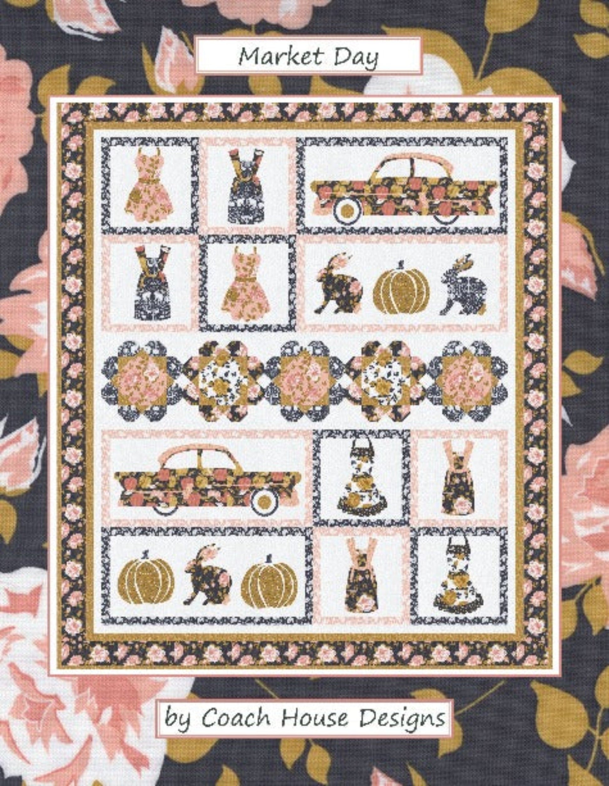 It's time for your local farmer's/antiques market! I absolutely love the vintage palette and theme of Sweetfire Road's Midnight in the Garden fabric line. There is lots of applique but it was so fun to make! This lap quilt measures 60" x 70" and would be an amazing addition to your decor. The pattern is available now and the fabric is scheduled to ship to your local quilt shop in March 2022.