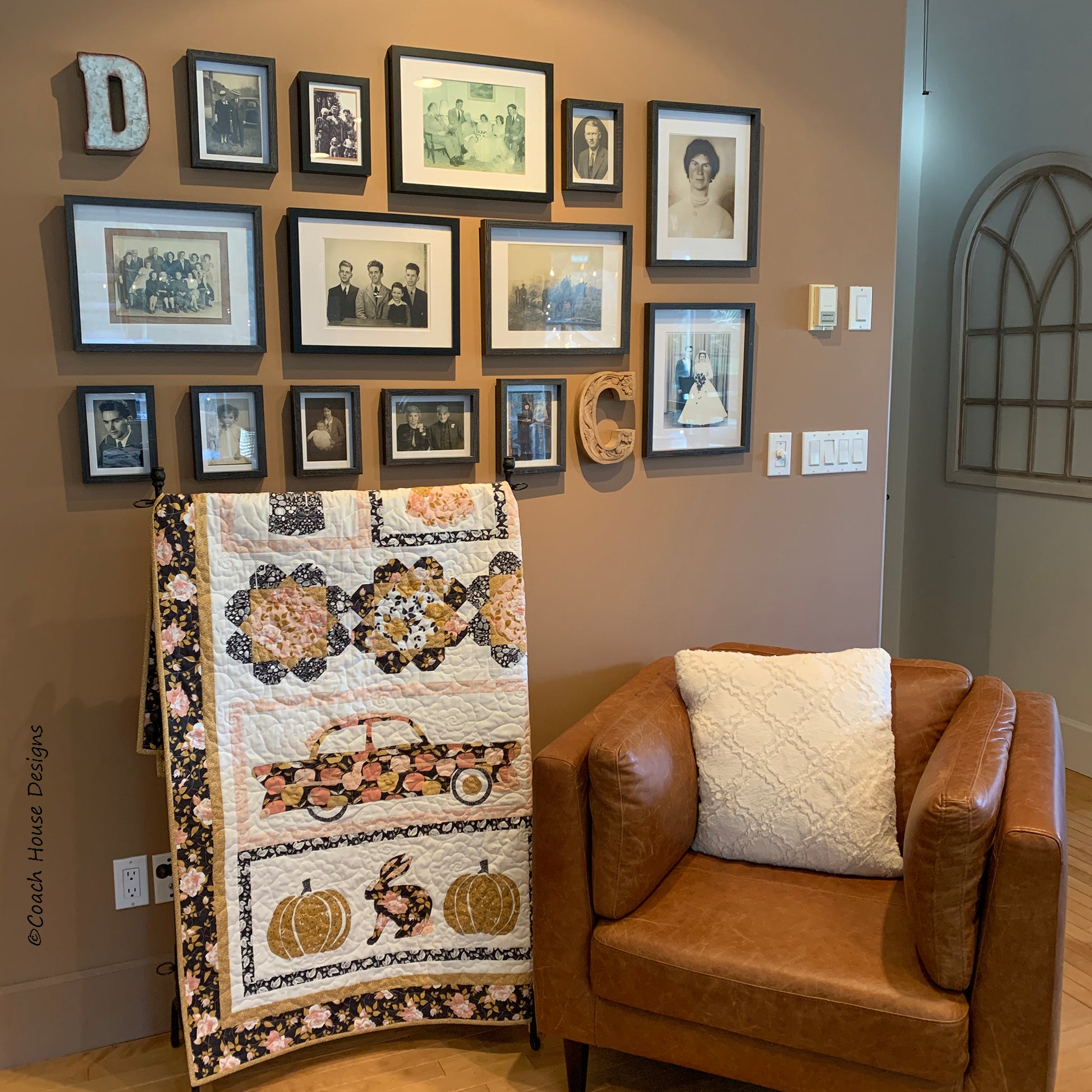 It's time for your local farmer's/antiques market! I absolutely love the vintage palette and theme of Sweetfire Road's Midnight in the Garden fabric line. There is lots of applique but it was so fun to make! This lap quilt measures 60" x 70" and would be an amazing addition to your decor. The pattern is available now and the fabric is scheduled to ship to your local quilt shop in March 2022.