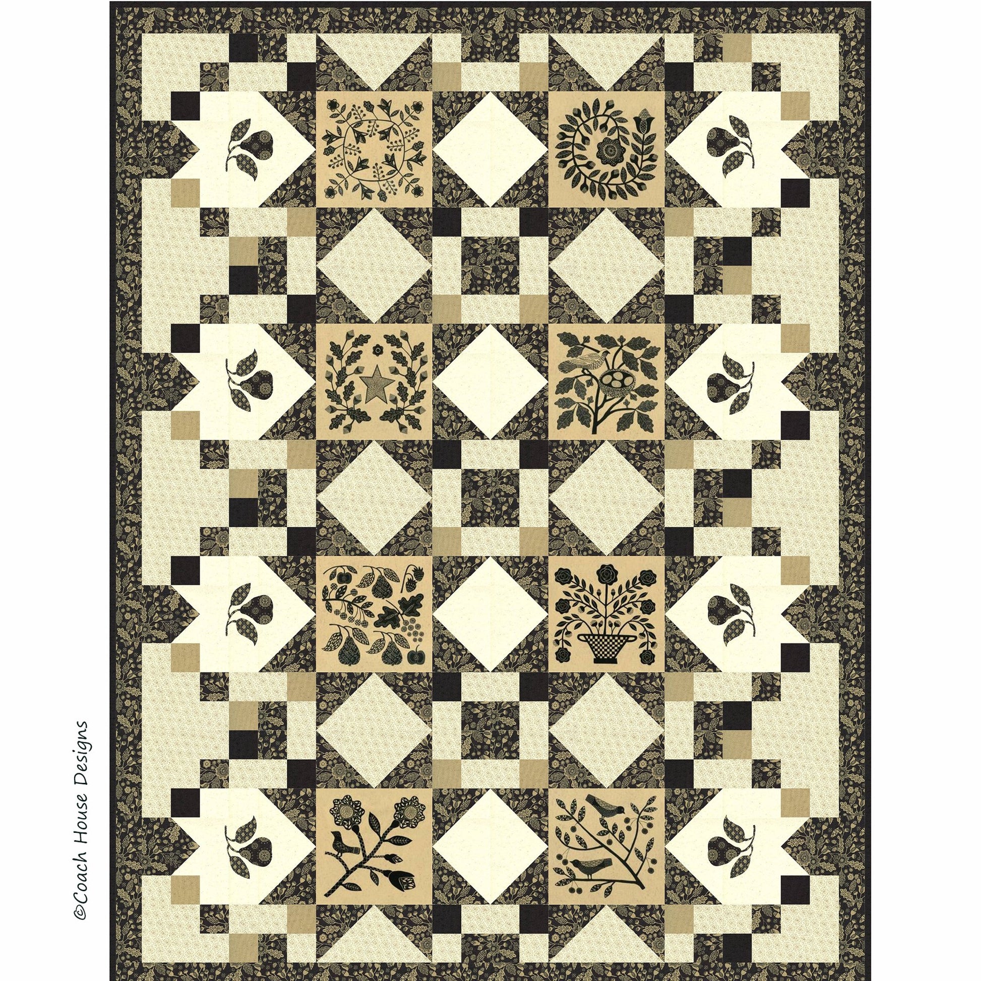 This elegant 58" x 76" lap quilt combines a panel from Kathy Schmitz's newest fabric line "Maryland" with simple piecing and a little bit of applique. The result is a timeless quilt you will cherish for years. Fabric for this pattern will be in stores in February 2021.