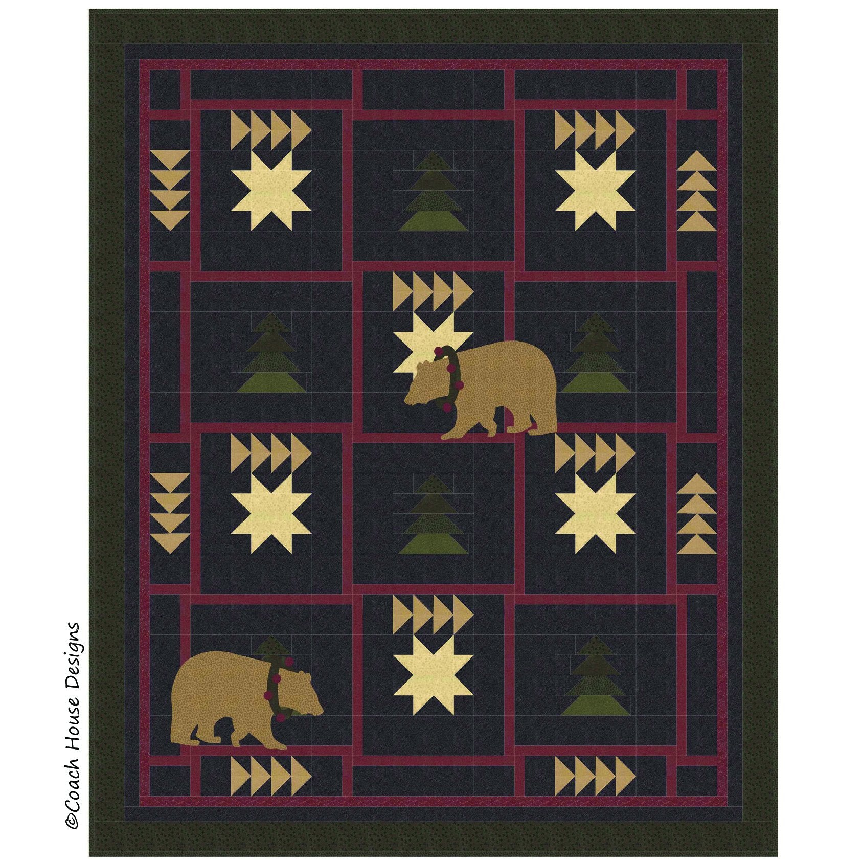 There is something magical about the forest at night. Bring it into your home safely with this 67" x 83" lap quilt. Shown here in Heartfelt by Kansas Troubles, this quilt would look cute in any outdoorsy fabric.