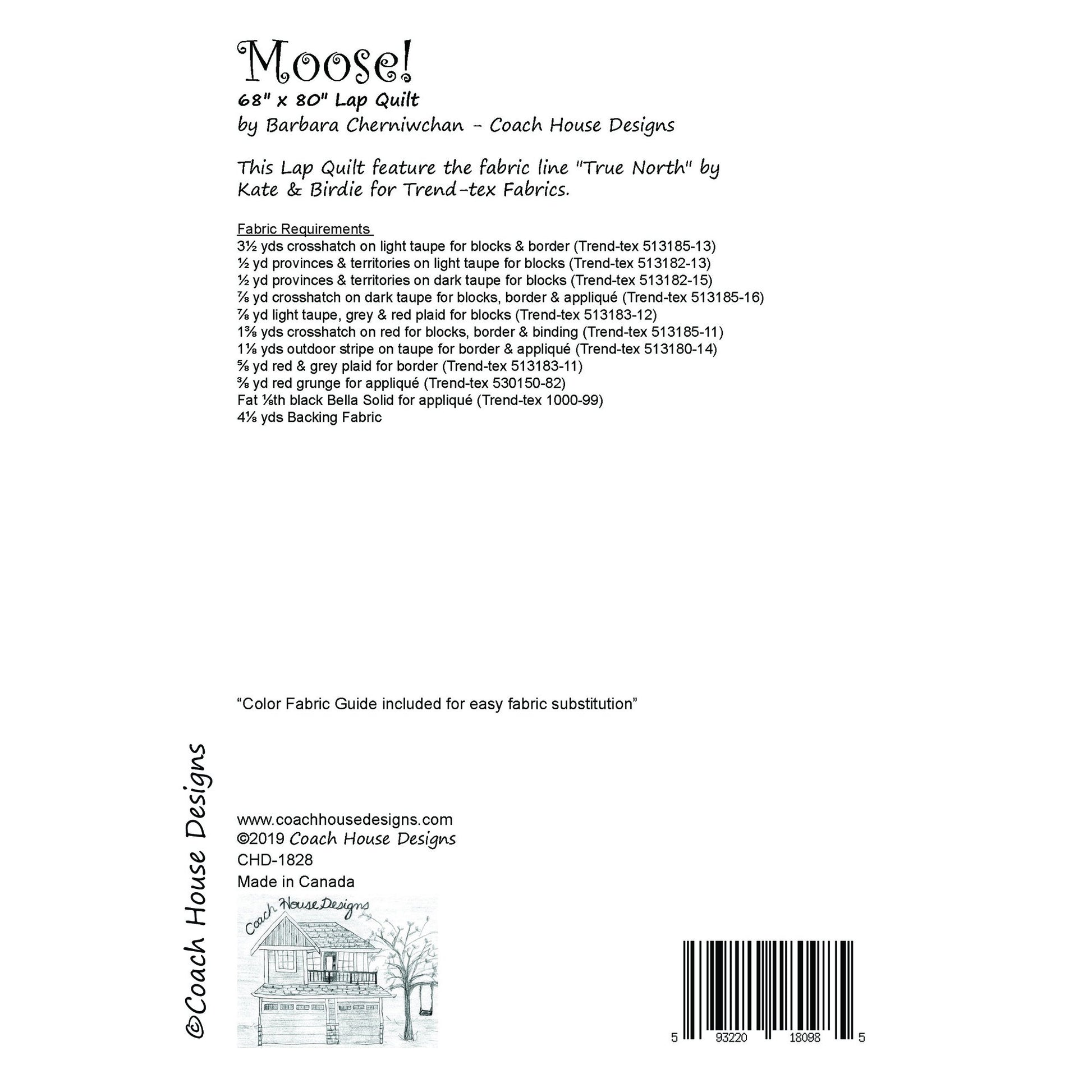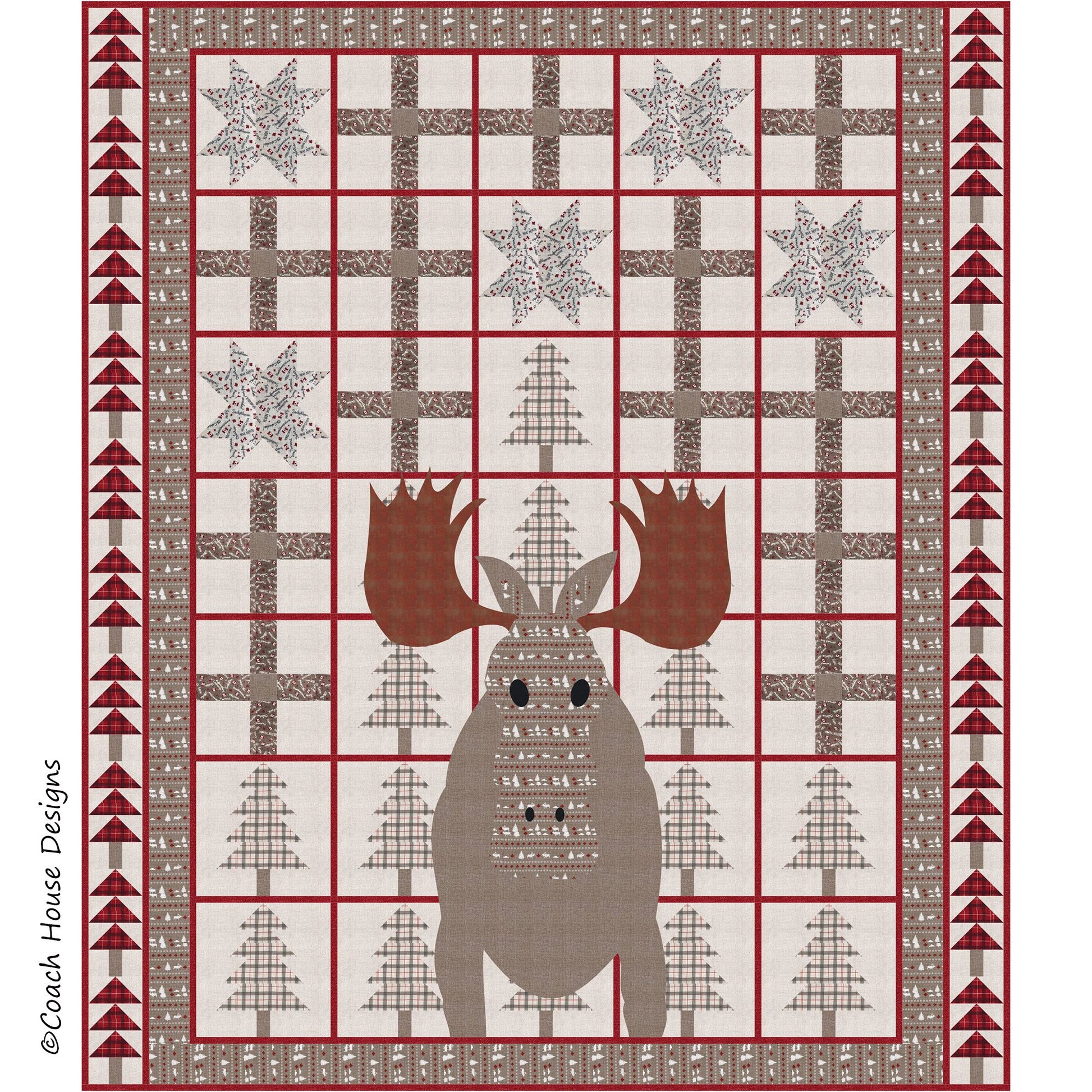 Nothing says life in the outdoors more than coming face to face with a giant moose! This 68" x 80" lap quilt pattern features "True North" by Kate & Birdie for Trendtex Fabrics but it would look great in any outdoorsy fabric.