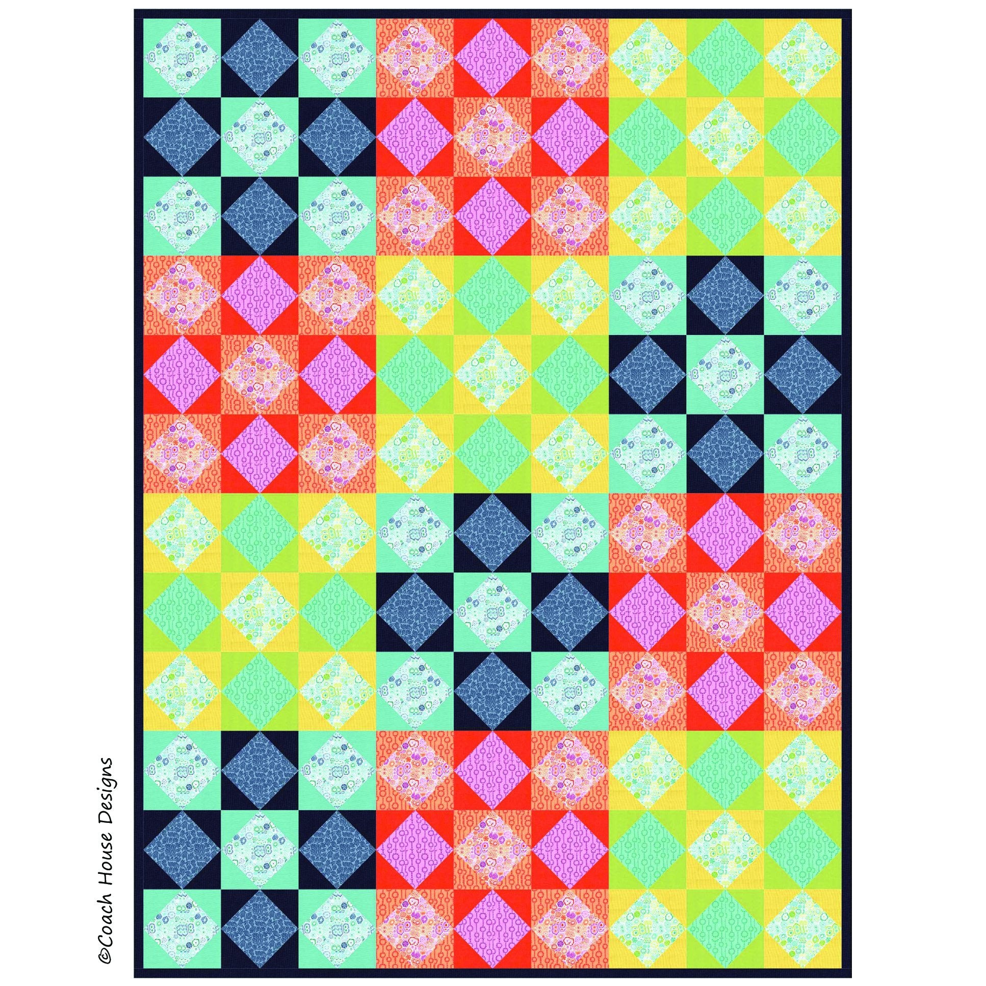 Eye-catching 72" x 96" twin quilt featuring "Grand Canal" by Kate Spain. Change up the fabric and you have a completely different look.