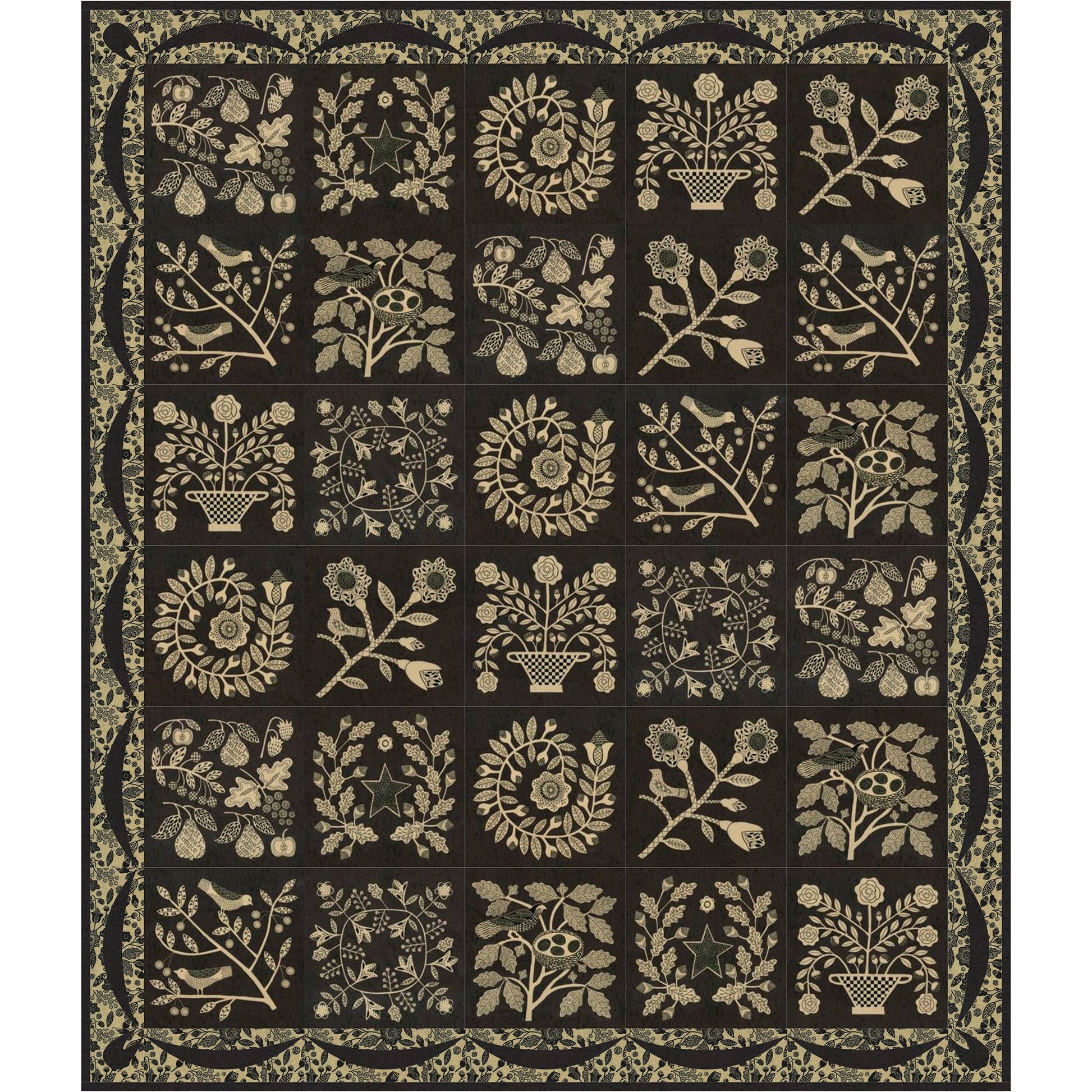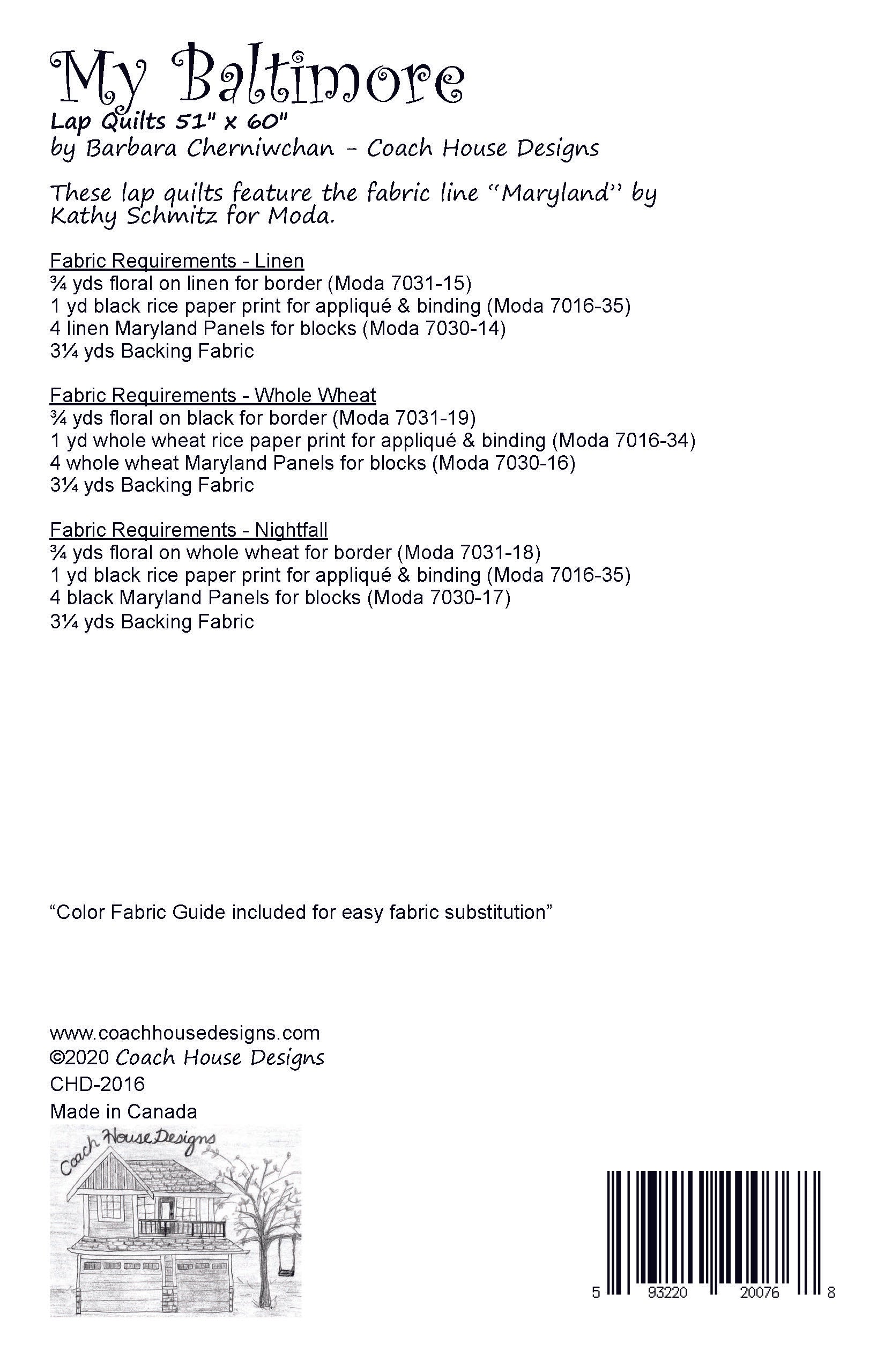 Stunning Baltimore Album quilt measuring 51" x 60" which is so easy. The center is made from the panels from Kathy Schmitz's Maryland fabric line and the border is real applique. Fabric will be in stores in February 2021.