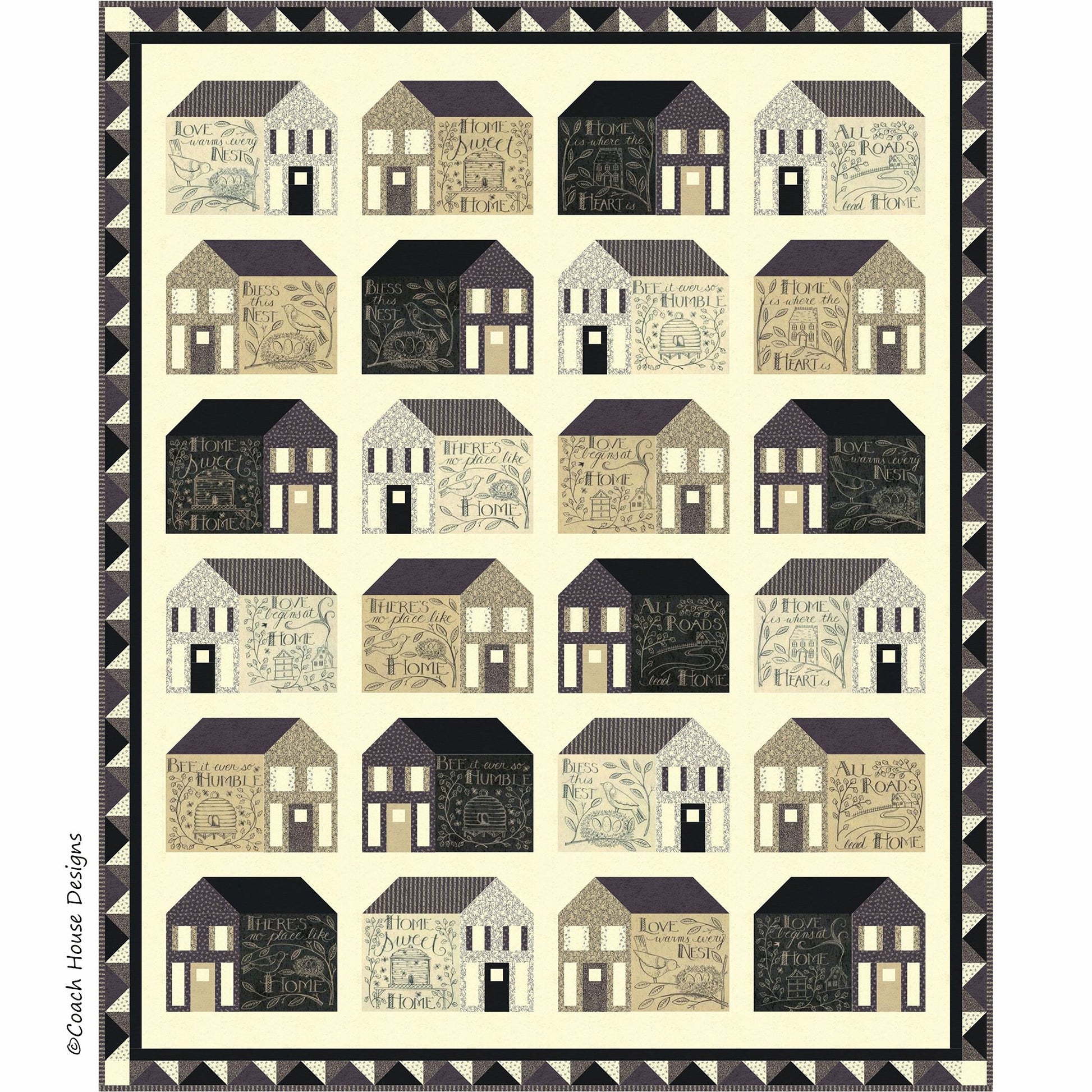 This twin quilt (72" x 88") pattern features Kathy Schmitz’s Home fabric line for Moda and uses the Home panels. Home was released in the summer of 2019 so if you want to substitute the panels you will need 8 1/2" blocks.