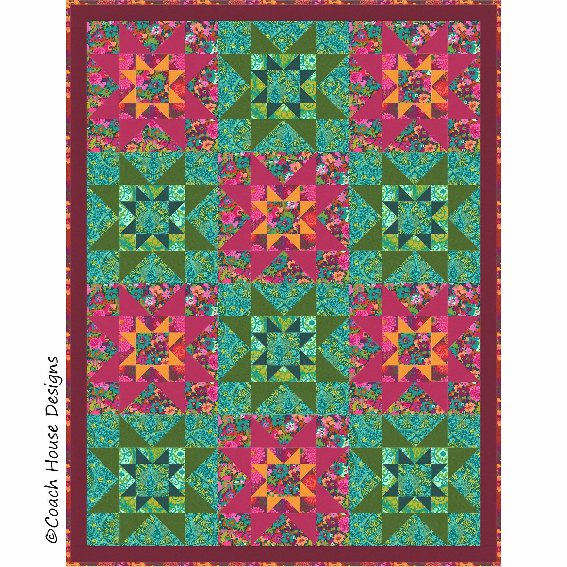 This stars within stars pattern is stunning in Crystal Manning’s gorgeous Kasada fabric line which was released in 2020. The lap quilt measures 52" x 68".