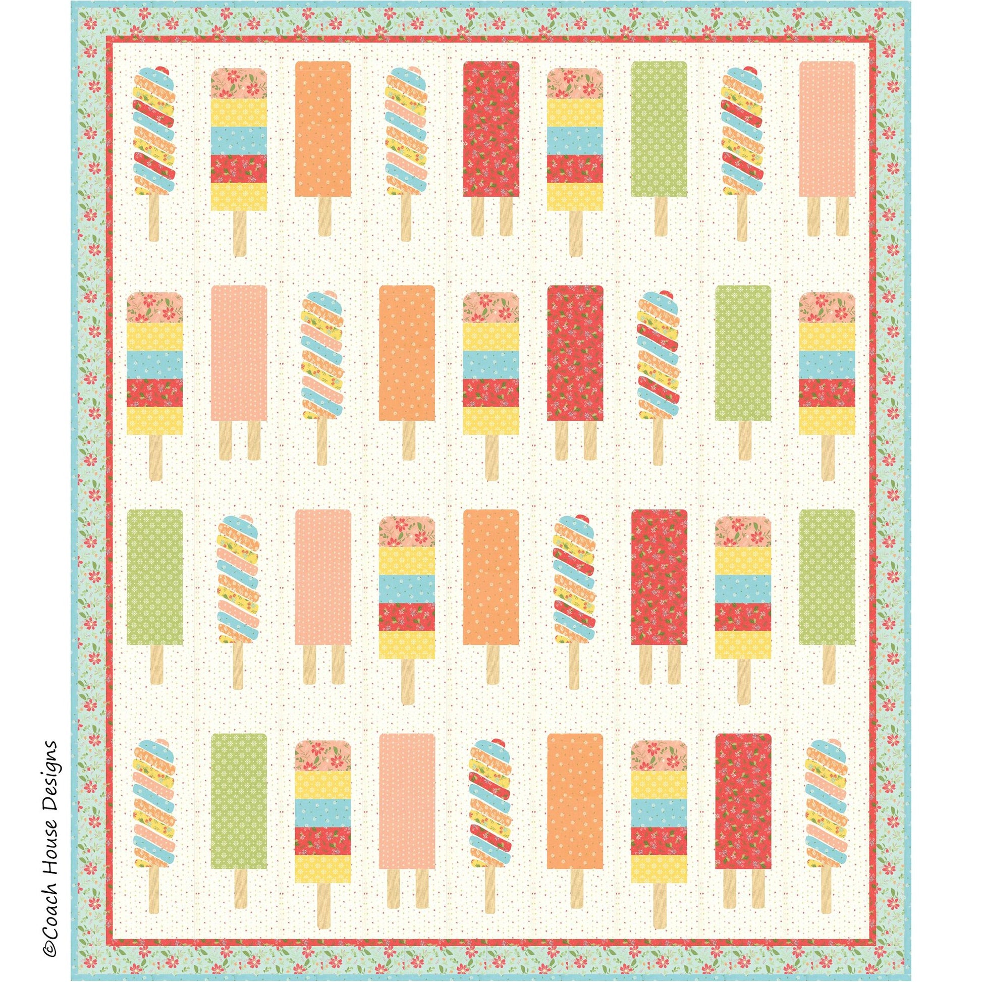 This fun summer lap quilt (59" x 69") features Summer Sweet fabric line by Sherri & Chelsi which was released in February 2020. It would look cute in brights too.