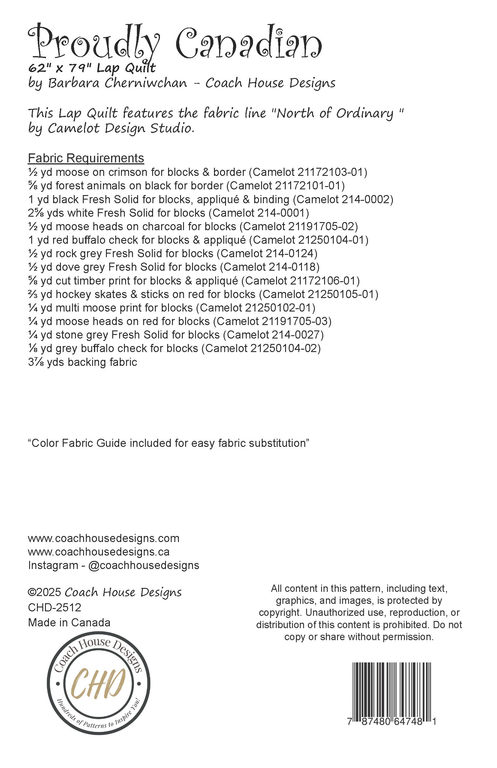 Celebrate Canada with Mountains, Bears wearing Canada toques, Maple Leaves, Lakes, Canoes, Flowers, quaint shops....Proudly Canadian. This lap quilt measures 62" x 79" and is mostly piecing with some applique. It features North of the Ordinary by Camelot Fabrics.