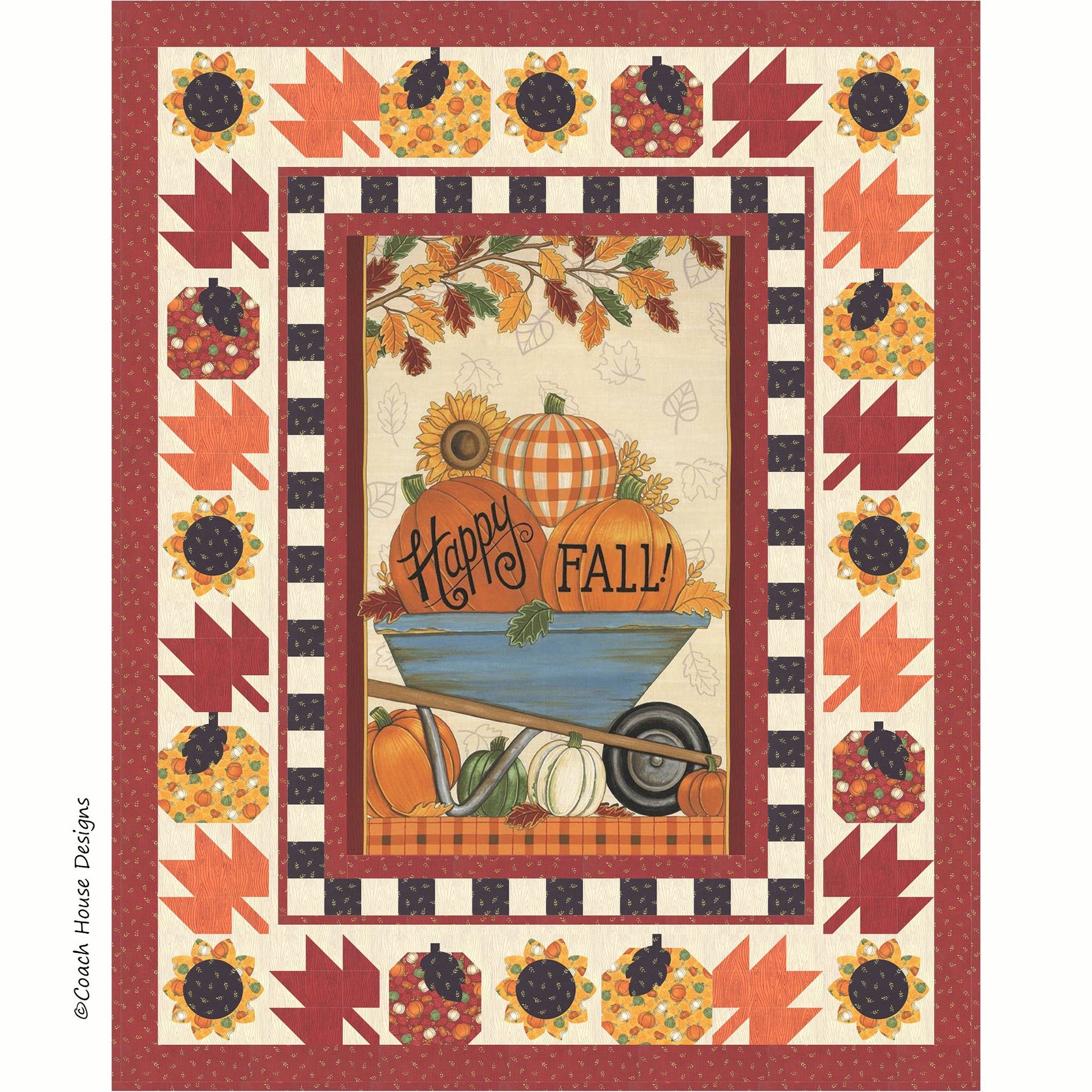 Celebrate fall with this fun wall/lap quilt (46" x 58") featuring the panel from Deb Strain’s "Happy Fall" fabric line. Happy Fall was released in July 2020. If you are looking to substitute the panel, you will need a 22" x 34" panel block.