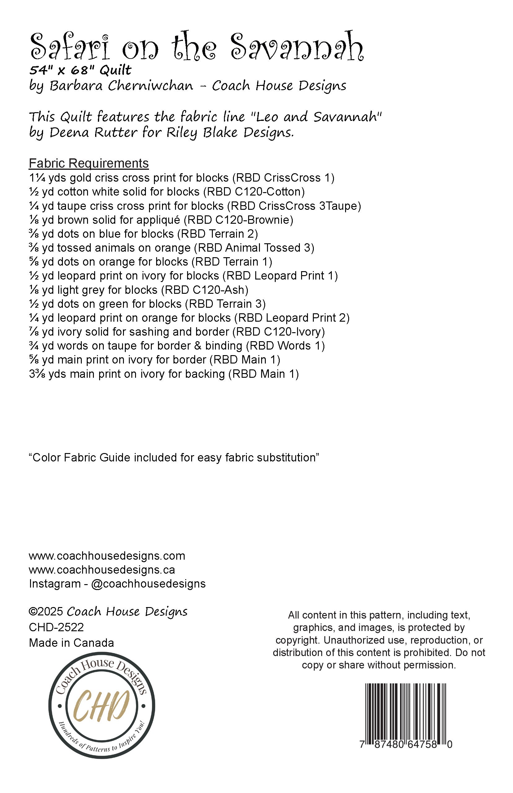 Safari on the Savannah Quilt Pattern by Coach House Designs