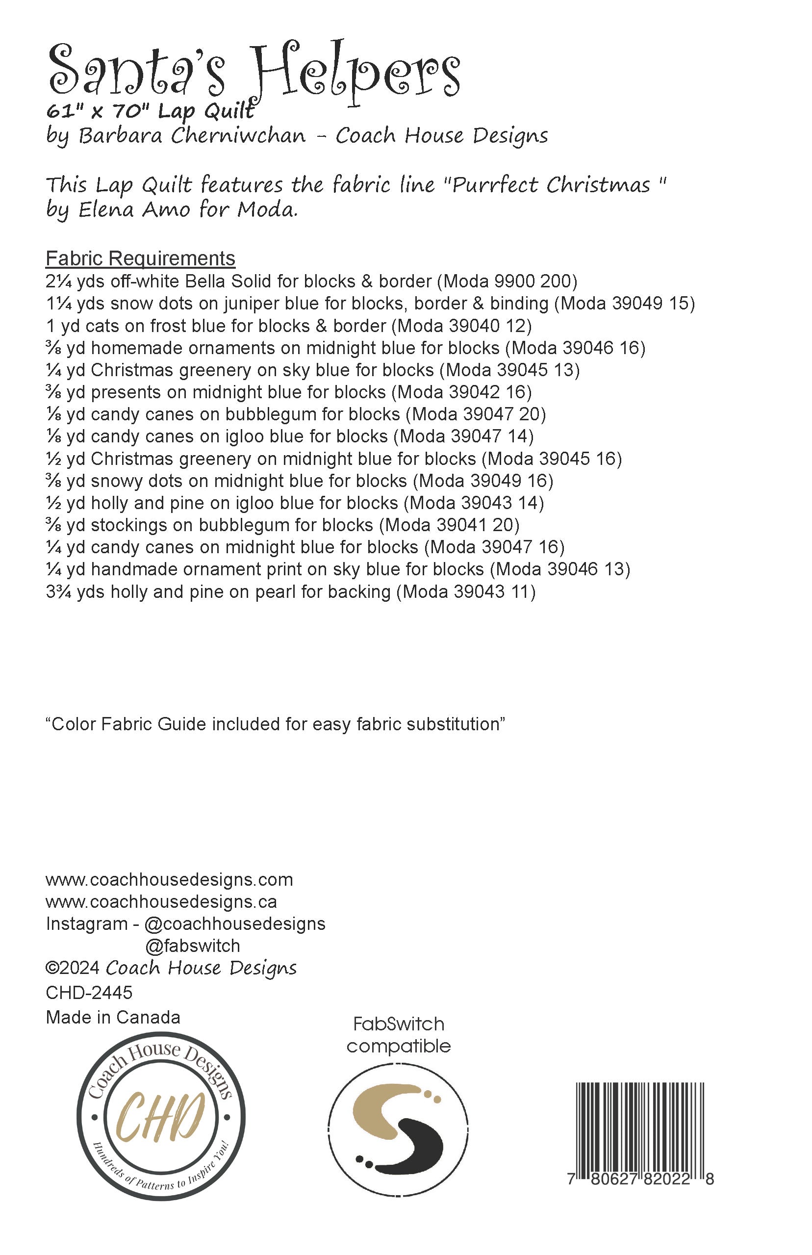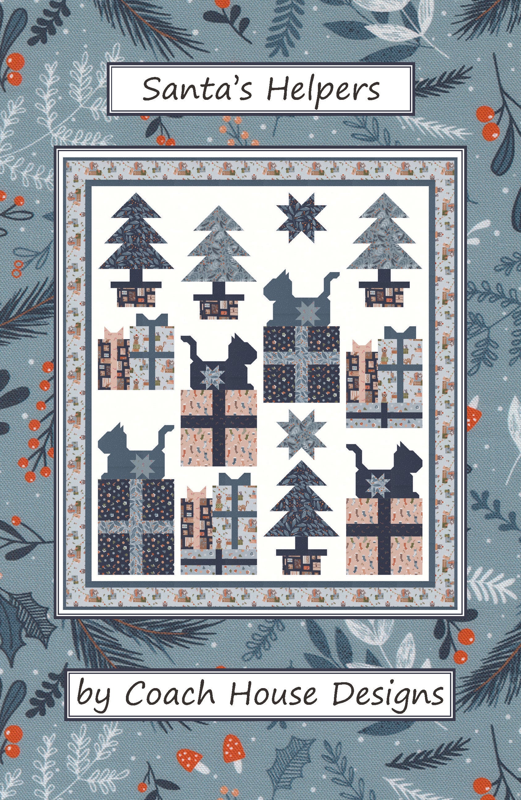 It's going to be a meowy Christmas with my new holiday pattern "Santa's Helpers". Finishing at 61" x 70", this pieced lap quilt features the fabric line "Purrfect Christmas" by  Elena Amo for Moda.