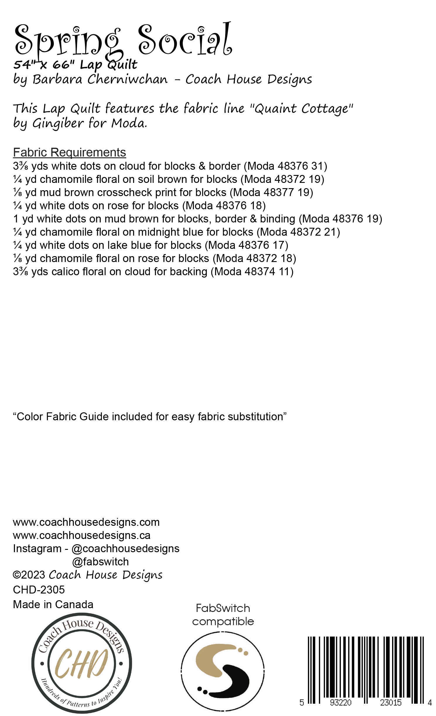 Chirp Chirp... Spring is in the air! Celebrate spring and summer with this 54" x 66" lap quilt. It features the fabric line "Quaint Cottage" by Ginigber for Moda fabrics.