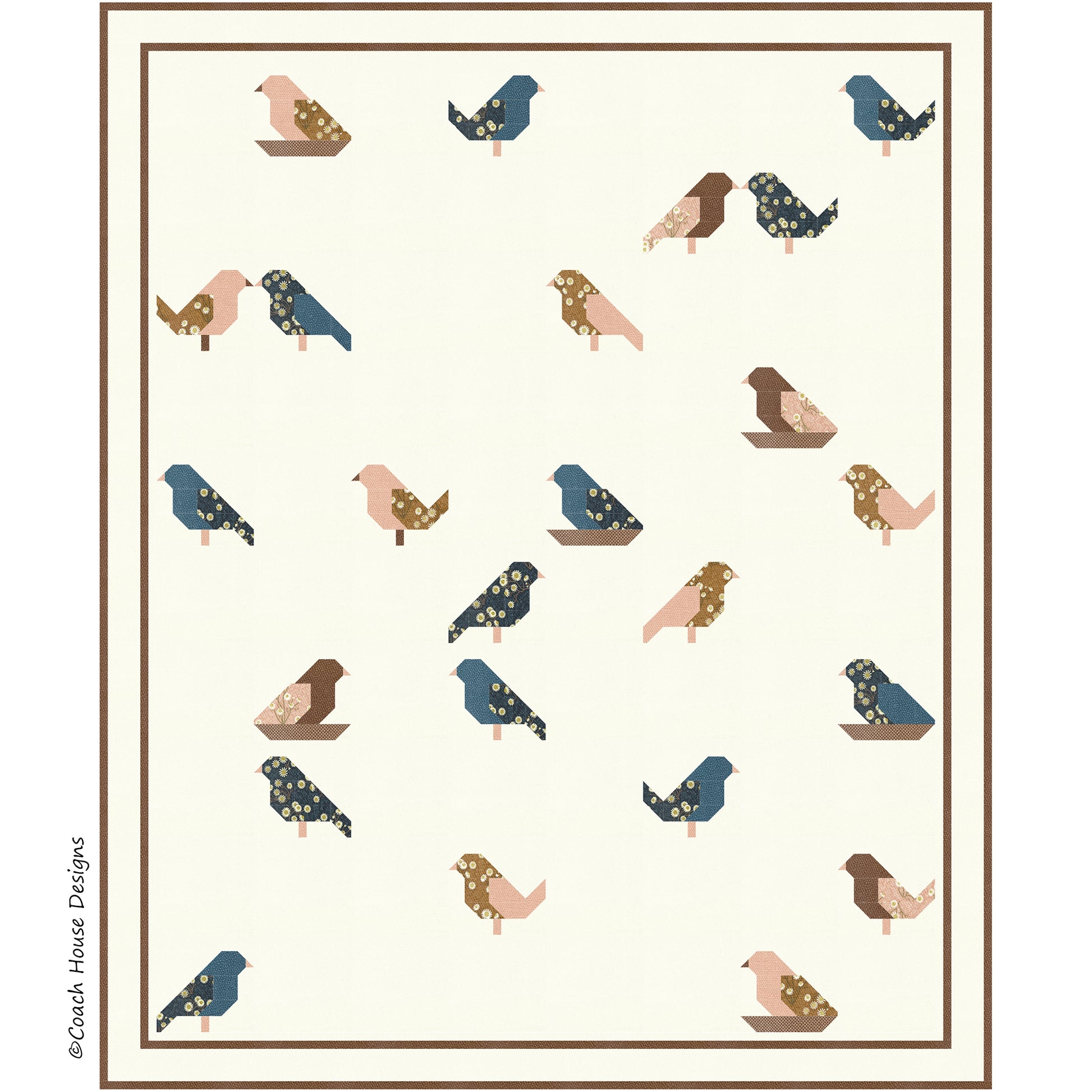 Chirp Chirp... Spring is in the air! Celebrate spring and summer with this 54" x 66" lap quilt. It features the fabric line "Quaint Cottage" by Ginigber for Moda fabrics.