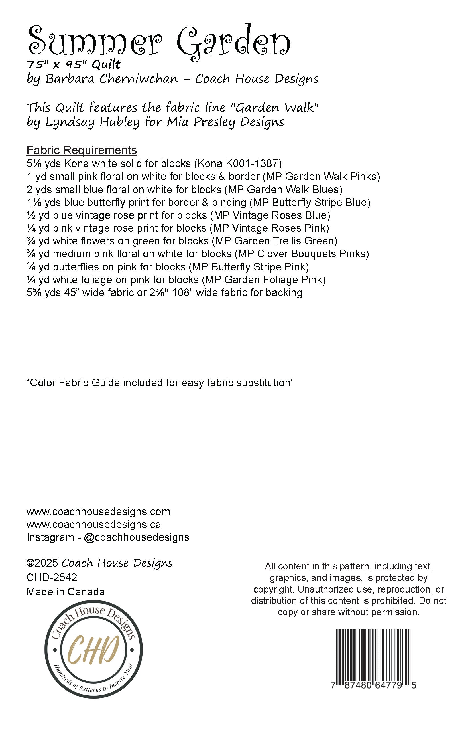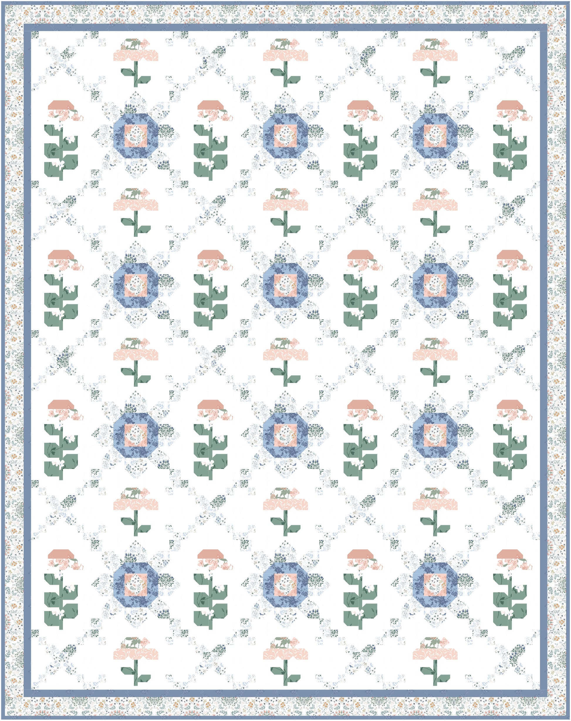 Step into the charm of an English countryside with the Summer Garden quilt pattern—a romantic floral chain design that evokes the serenity of a sun-dappled cottage garden in full bloom. Measuring 75" x 95", this twin-size quilt is the perfect blend of elegance and comfort.